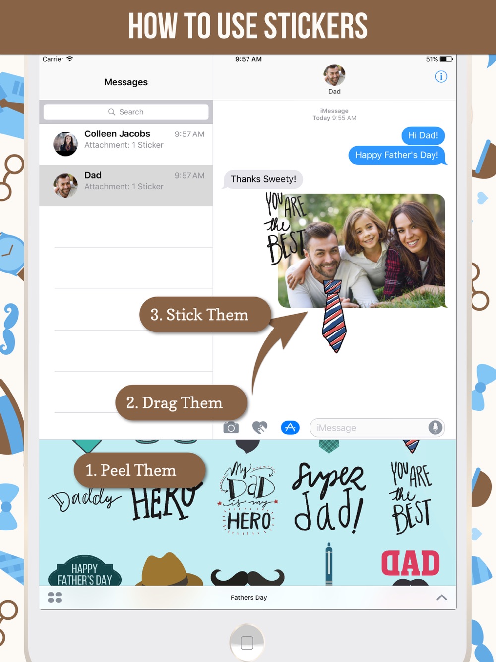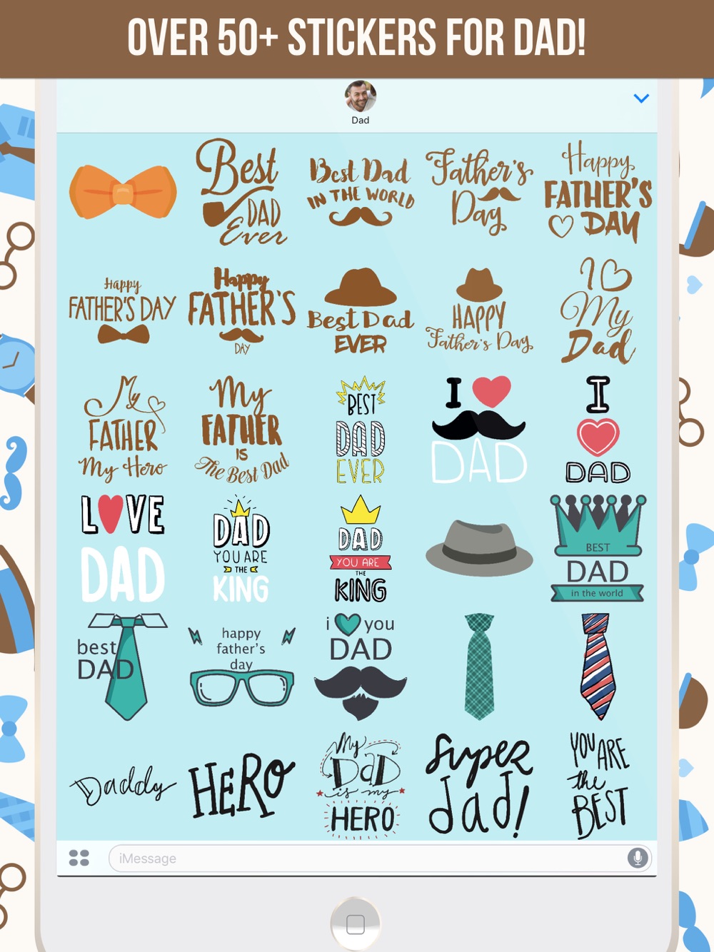 Celebrate Father's Day with over 60 iMessage stickers! Show him he's your hero, and the best dad in the world with a wide variety of stickers for iMessage.