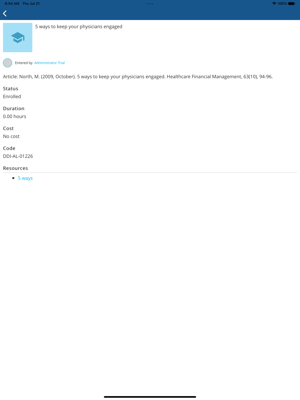 * View learning list details and launch mobile friendly learning content.