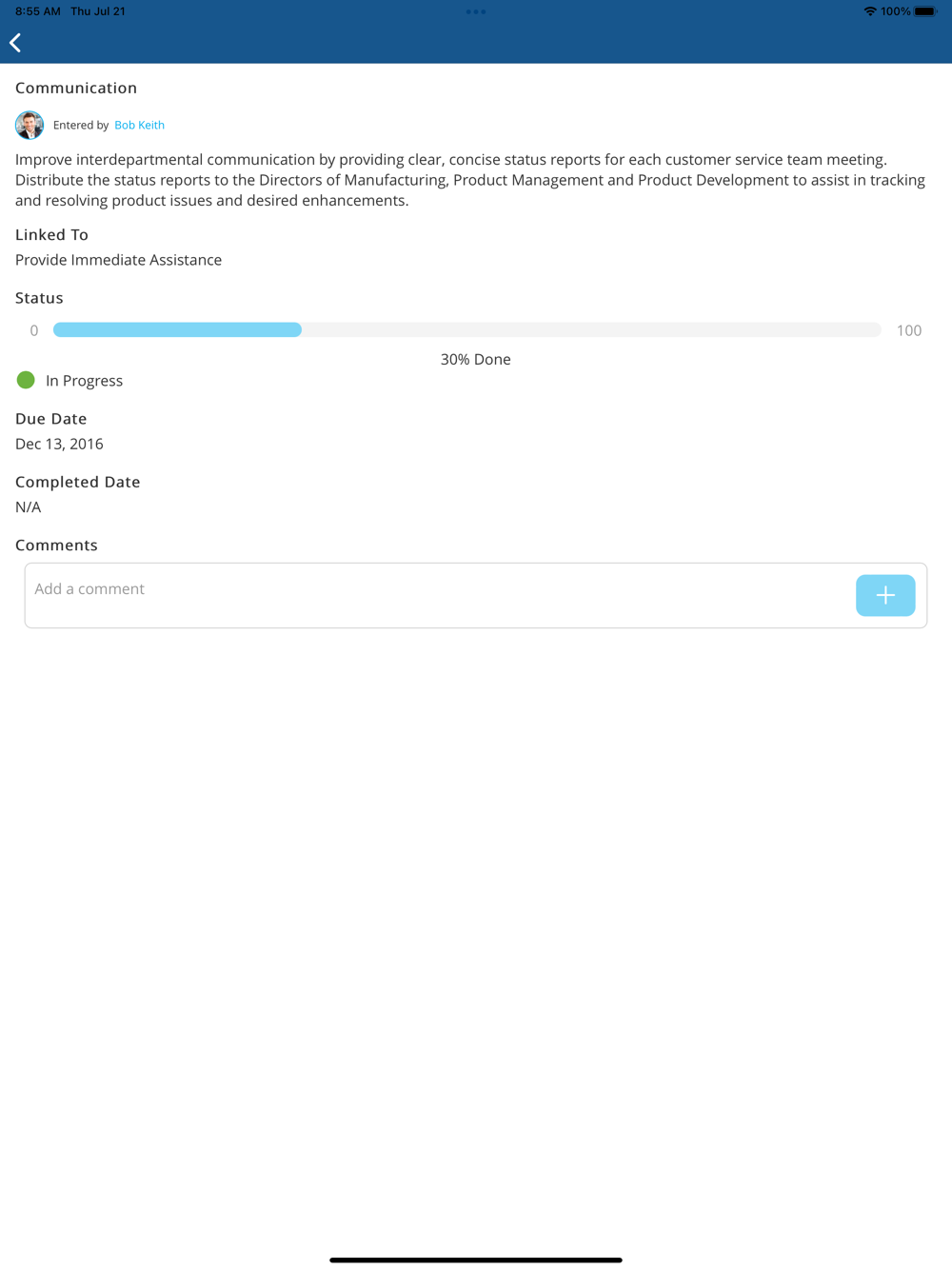 * Participate in and capture notes from 1:1 meetings anywhere, anytime. Track start and end of meetings, navigate agenda, view topics and add comments.