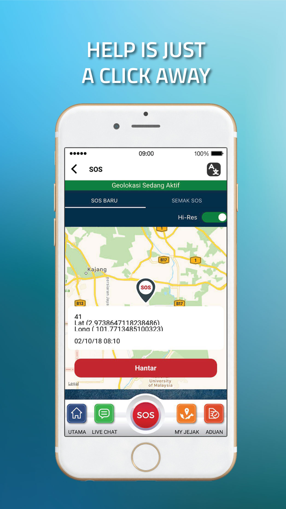 - SOS - User sent emergency signal and location for immediate assistance. The SOS signal will be directly sent to the RMN operation center.