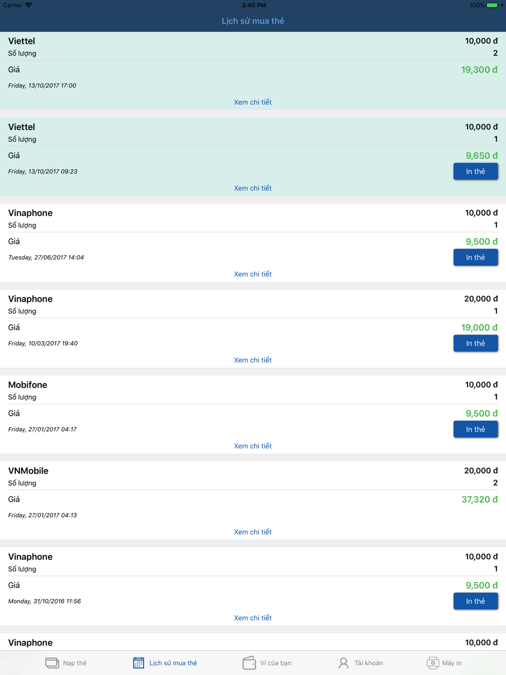 - Mua Bán thẻ điện thoại cho cả 6 mạng điện thoại ở Việt Nam: Viettel, Mobifone, Vinaphone, Vietnam Mobile, Gmobile và SFone.