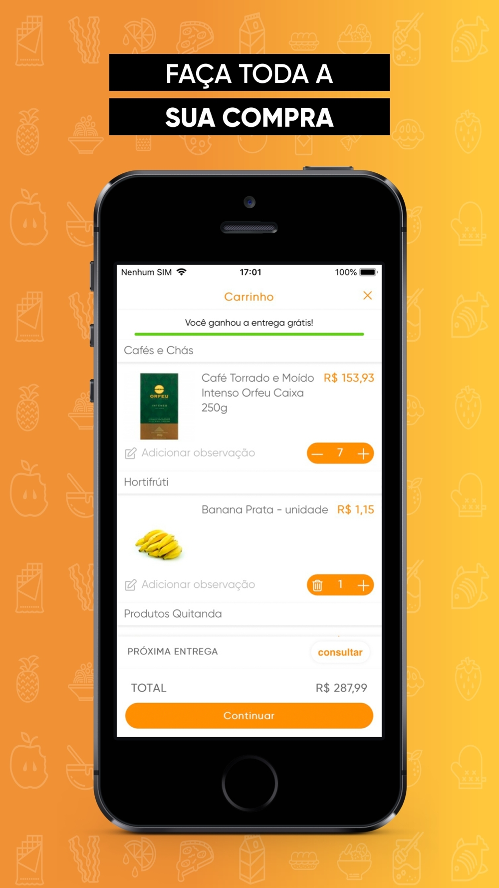 Os nossos Shoppers (profissionais autônomos) vão até o mercado escolhido por você, realizam toda a compra dos produtos que você pediu - com todo carinho e do seu jeito - e entregam na sua casa no dia e horário agendado.