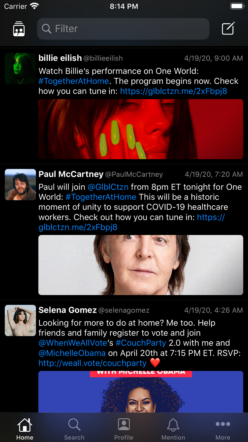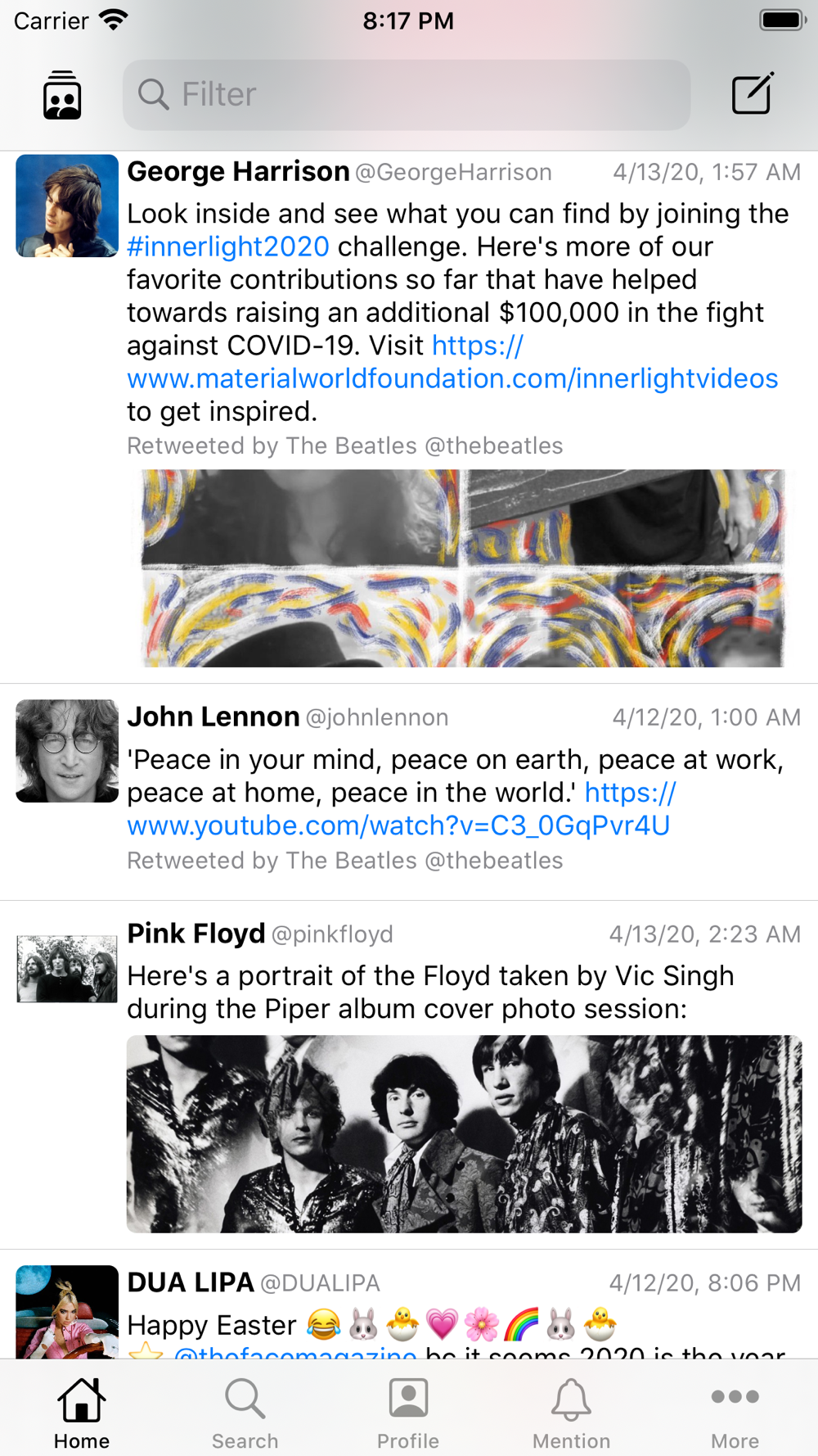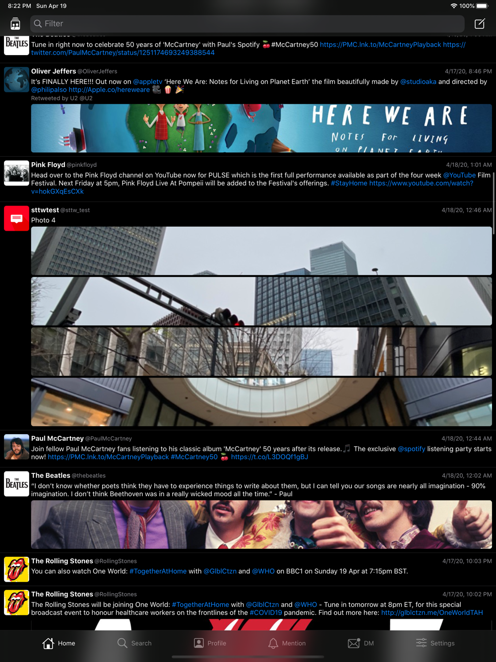- Your and other user's Profile, List, Like, Mention