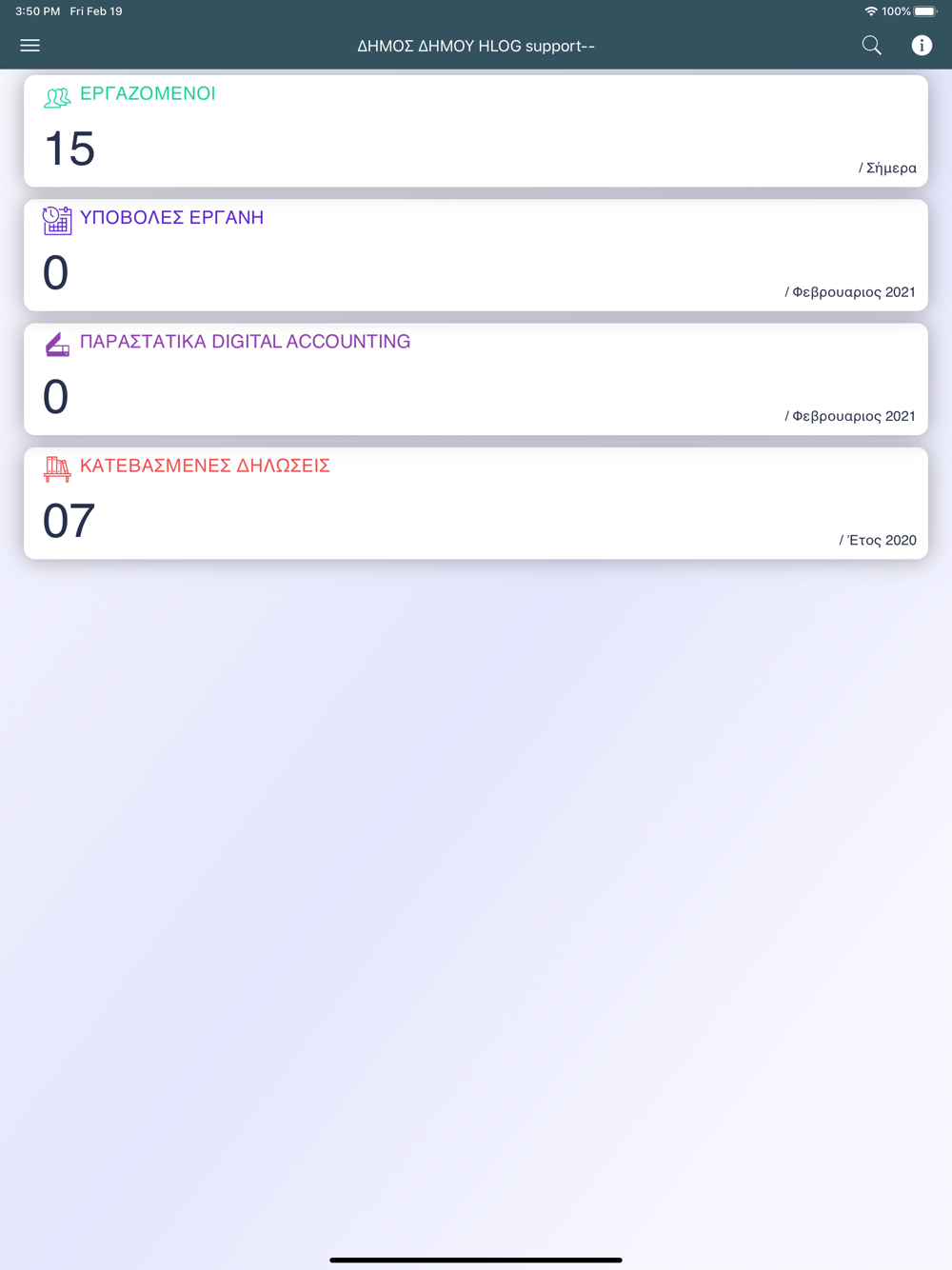 -- Δυνατότητα περιήγησης στην εφαρμογή με χρήση των δοκιμαστικών δεδομένων (demo)