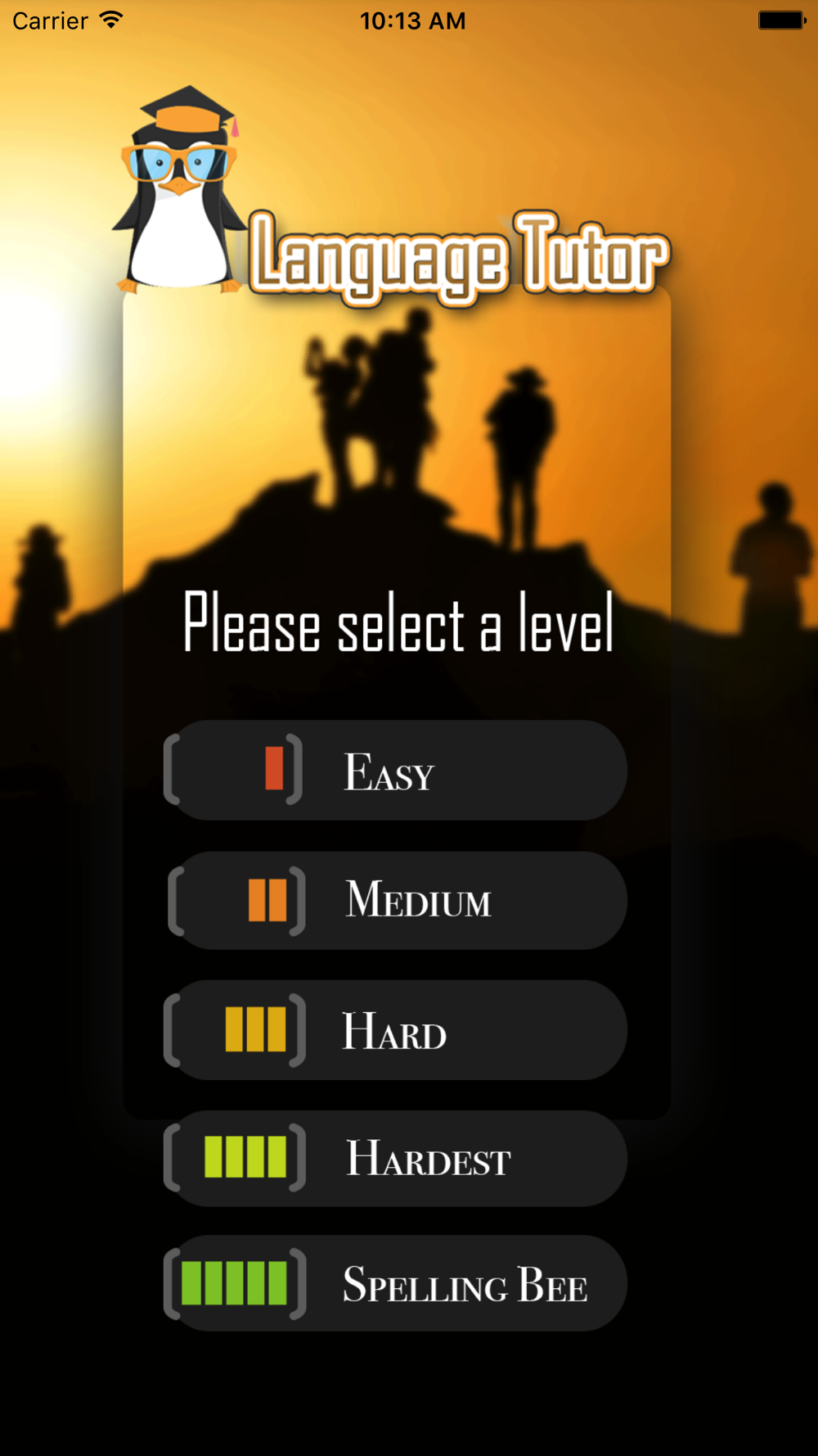 Language Tutor – Spelling focuses on improving your spelling skills. Pick a level of your choice and easily start practicing. An electronic voice vocalizes each word of the selected level set and you try to write what you hear. As a challenge, you may even try to spell the “Spelling Bee” contest words.