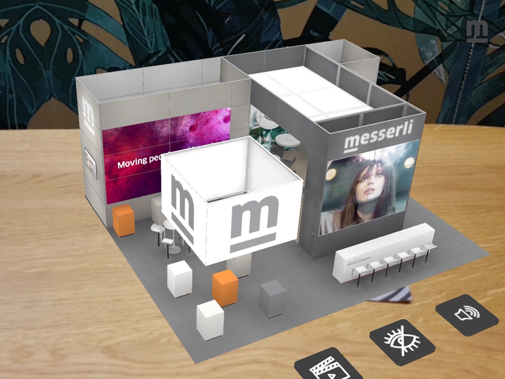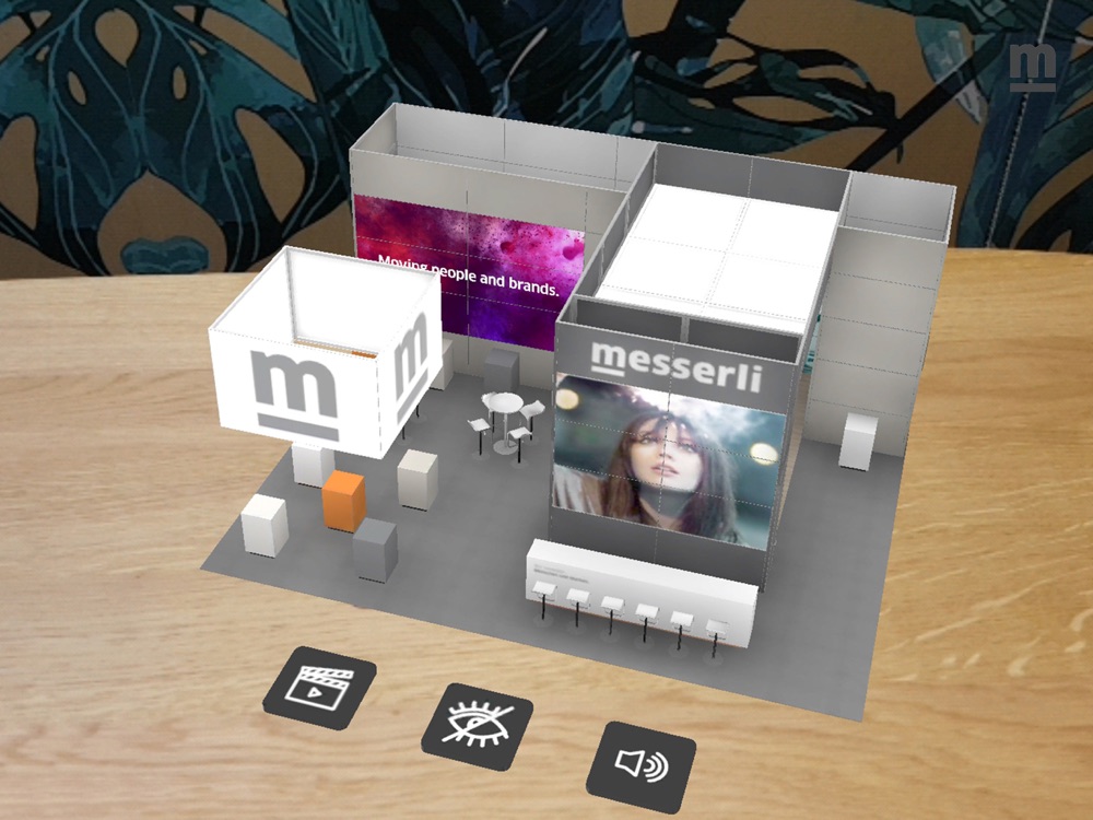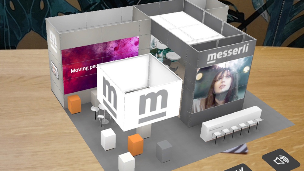 Bei Projekten: In der Konzeptionsphase Ihres Projektes erhalten Sie von Ihrem Ansprechpartner bei der Andreas Messerli AG einen individuellen Tracker. Öffnen Sie die Messerli AR-App und richten Sie die Kamera Ihres Smart Devices auf den erhaltenen Tracker. Die App zeigt die aktuelle 3D-Ansicht Ihres Projektes. Bewegen Sie Ihr Smart Device über den Tracker, um Ihren Messestand, Event oder Showroom aus allen Blickwinkeln zu betrachten. Über verschiedene Schaltflächen können Sie Audio- und Videoinhalte steuern sowie einzelne Elemente ein- oder ausblenden. So können Sie sich schnell ein umfassendes Bild von Ihrem Projekt machen und die Wirkung von Grafiken oder Video-Screens ganzheitlich erfahren.