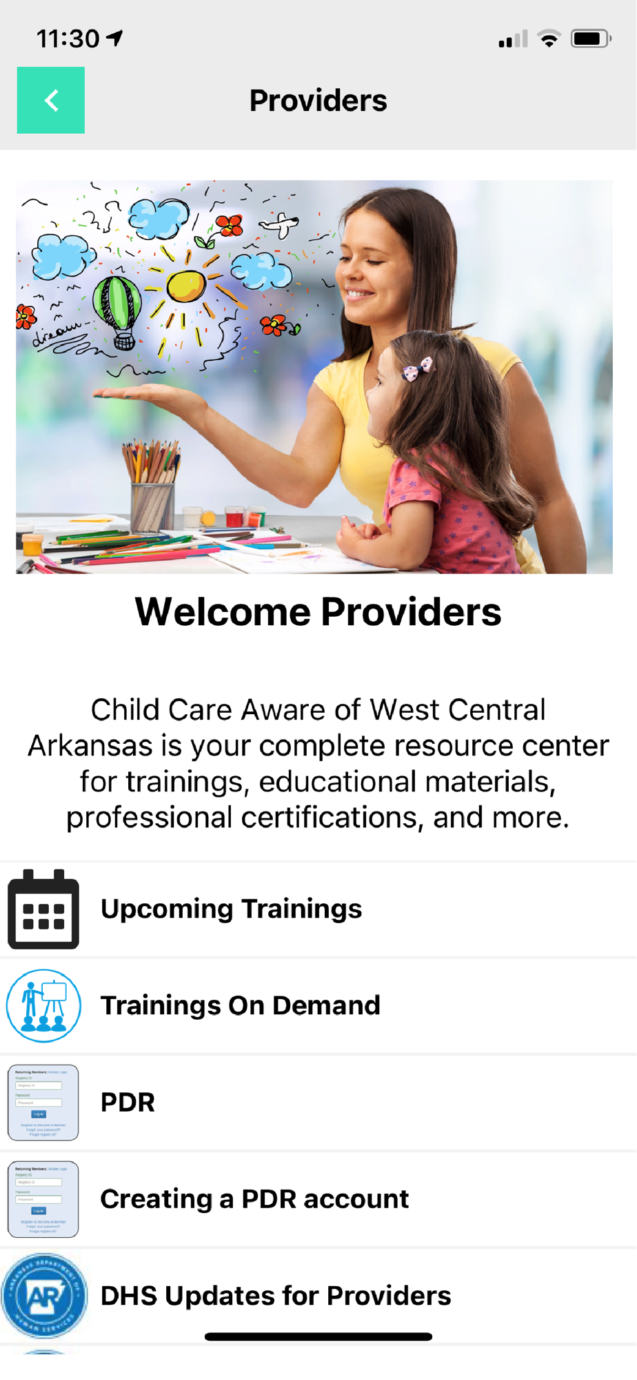 Child Care Aware of West Central Arkansas at National Park College is a community child care resource and referral program providing services in thirteen counties: Clark, Dallas, Garland, Grant, Hot Spring, Howard, Jefferson, Montgomery, Perry, Pike, Polk, Saline and Sevier. Our services include parent support and help locating child care, child care provider trainings and technical assistance, and other efforts to increase the quality and availability of child care. All services are FREE to you and the community.