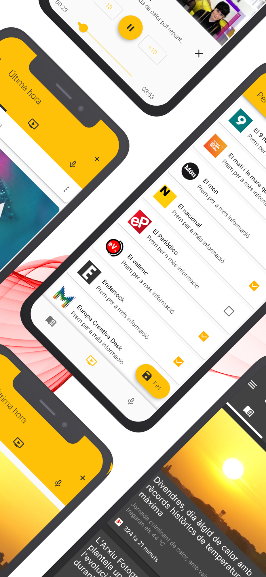 Hi podràs trobar Gencat Actualitat, Gencat Blog, Gencat Idescat, El Diari - Portada de El Diari, Diari de Girona, Diario de Ibiza, Empordà, Regió7, Diario de Mallorca, Vilaweb, MAC, El periódico, Diari de Terrassa, El punt avui, La vanguardia, Diari ARA, 20 minutos Catalunya, Sport, El mundo deportivo, L’esportiu de Catalunya, Diari més digital, Directe.cat, Geopolitica.cat, Nació Digital, El Món, Europa Press en català, Rac1, e-Noticies, Xarxanet Internacional i més, tots en una aplicació simple i fàcil de fer servir.