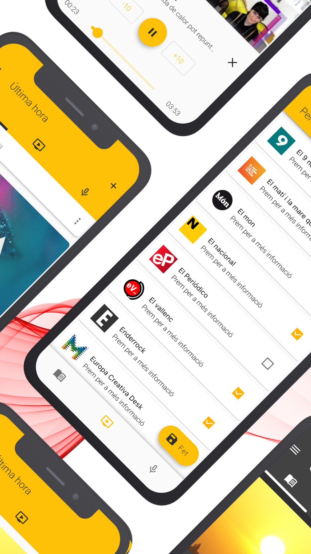 A més, tindràs accés a tots els podcasts del Diari Ara, La Grada Ràdio, RAC1, La competència, El Barça juga a RAC1, Catalunya al dia Barcelona, Catalunya al dia Tarragona, Al Dia. Terres de l’Ebre, Catalunya al dia Girona, Catalunya al dia Lleida, Tarragona Ràdio, Radio Estel, Informe Sala i Martín, Sentiment Lleidatà i molts d’altres.