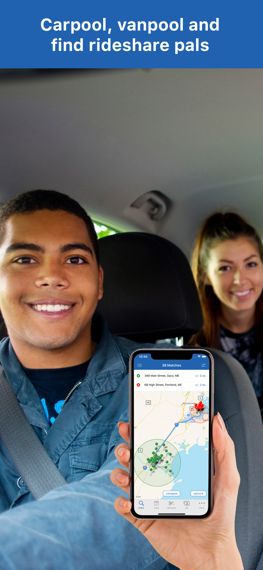 Use the GO MAINE app to find rideshare matches and earn rewards in Maine.
