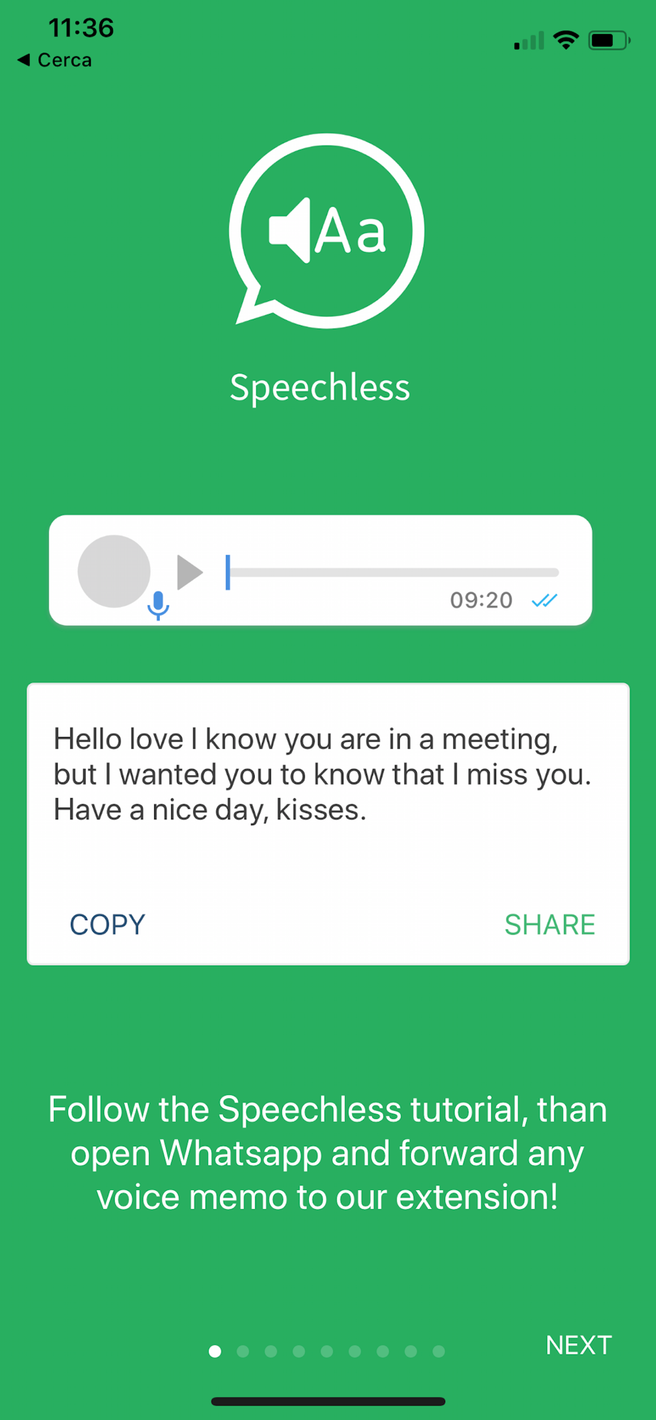 You can just forward a whatsapp voice note to the app and within seconds you'll get a text ready to be copied or shared easily.