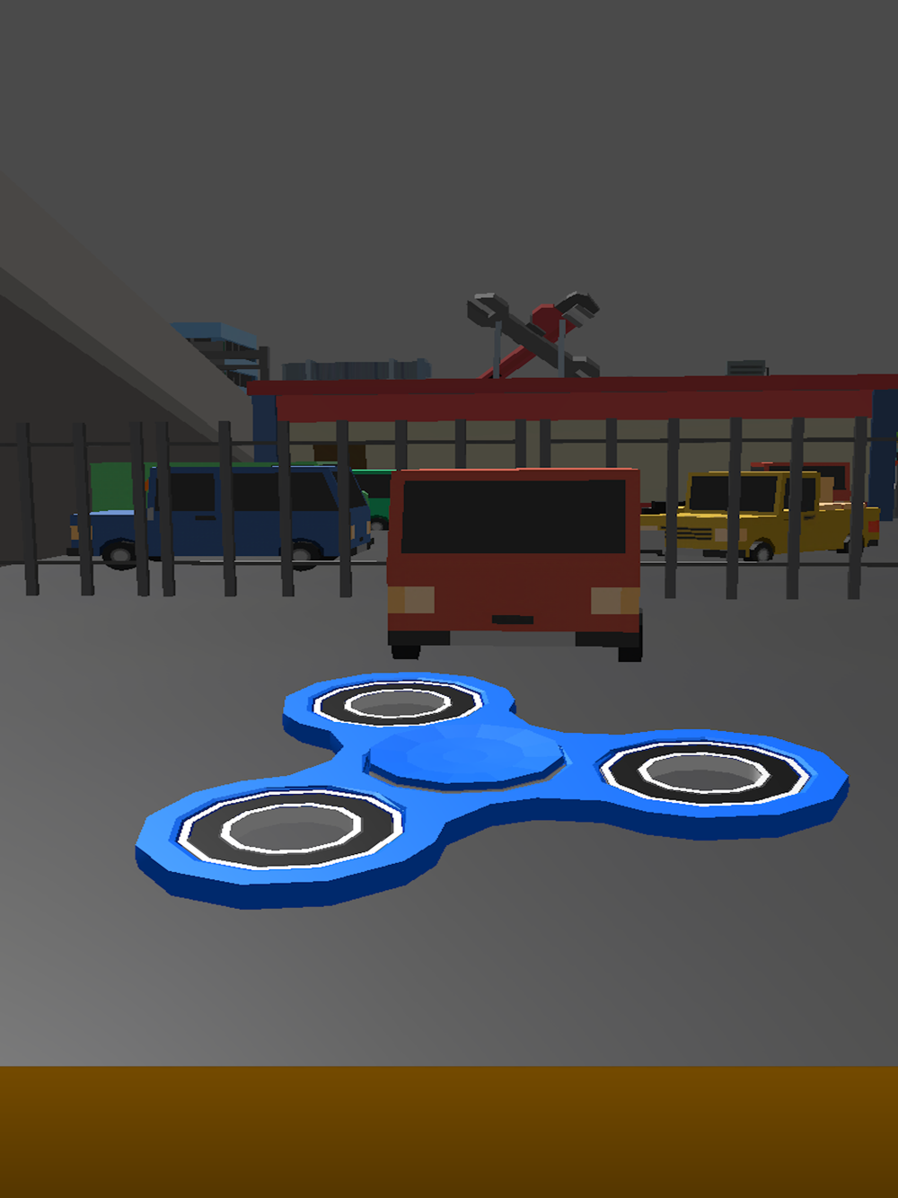 Spin the fidget spinner in a city environment. Spin fast to toss it.