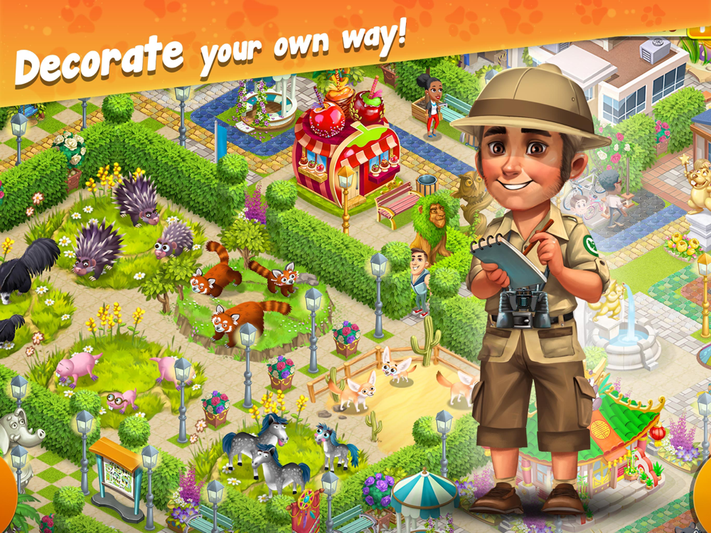 Start building your dream zoo now for free! Set up habitats for your adorable animals. Add ice cream stands, restaurants, pet shops, and souvenir shops. Build and customize a big farm, grow plants and decorate the zoo your own way with trees and flowers, and make it truly unforgettable as you welcome your visitors!