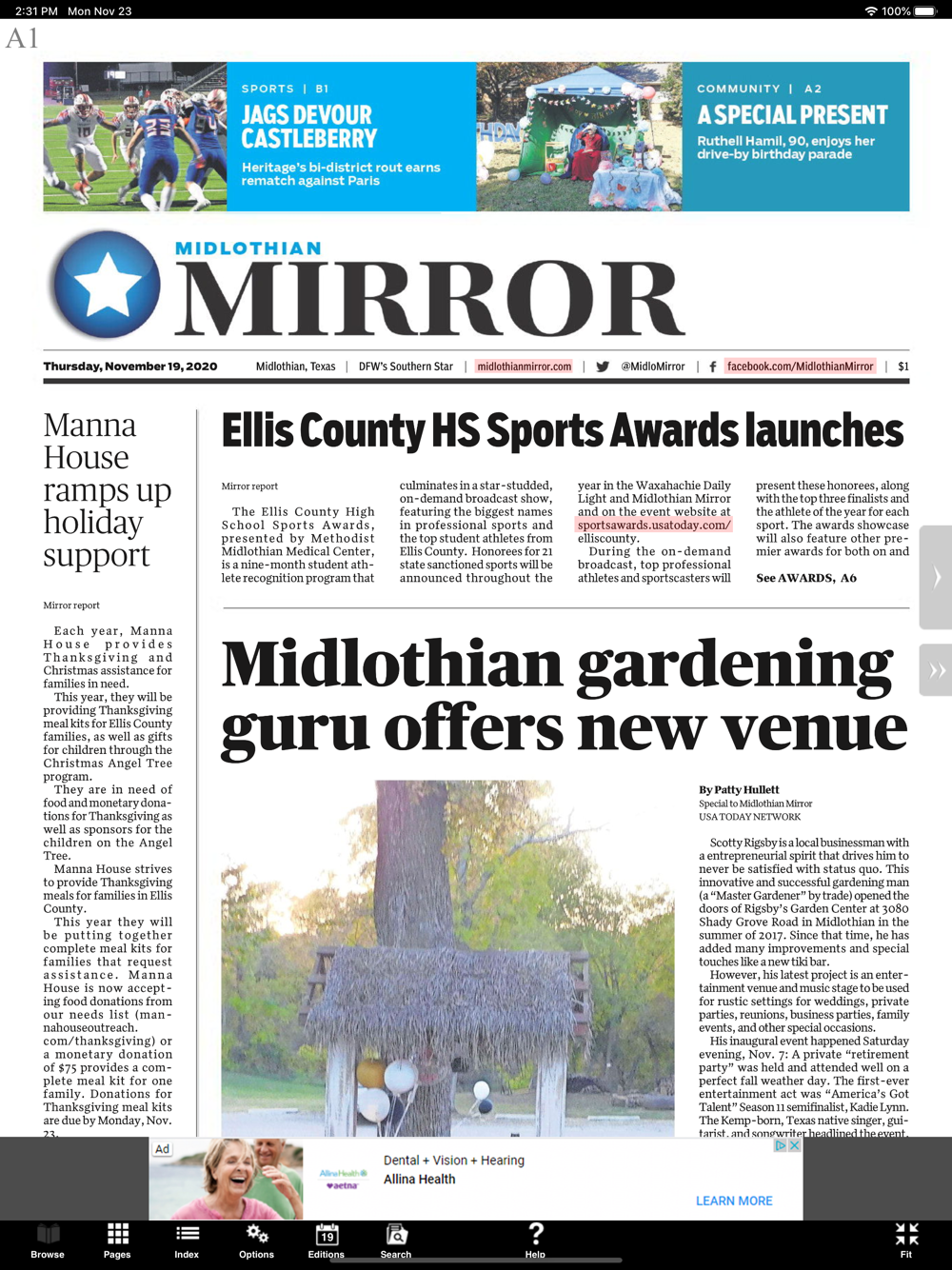 The Midlothian Mirror eEdition is an exact digital replica of the printed newspaper. Readers of the paper can flip through the pages, read stories, photos, and view ads just as they appeared in print.