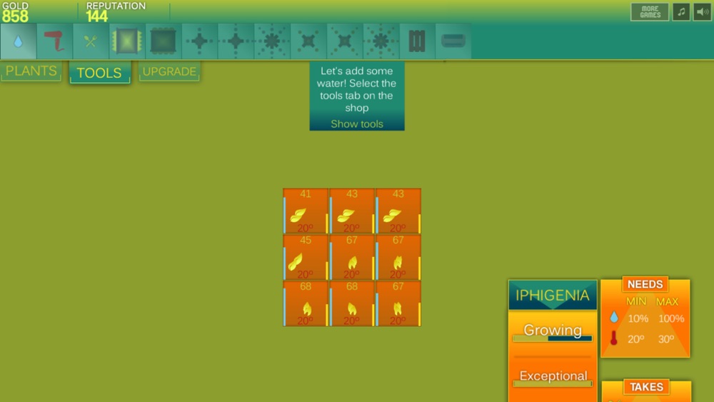 You have landed on a new planet and must plant seeds and grow plants! Become the first farmer of the new land. Purchase equipment to plant your seeds and water your plants.