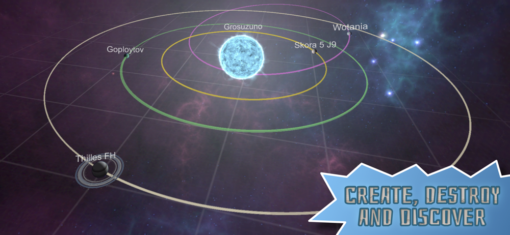 See how your pocket universe plays out over time with the in built realistic physics simulator. Observe as your creations flourish or collapse into destruction. Intervene like a god with physics tools to affect the orbit of planets, heat them up, cool them down or explode them!