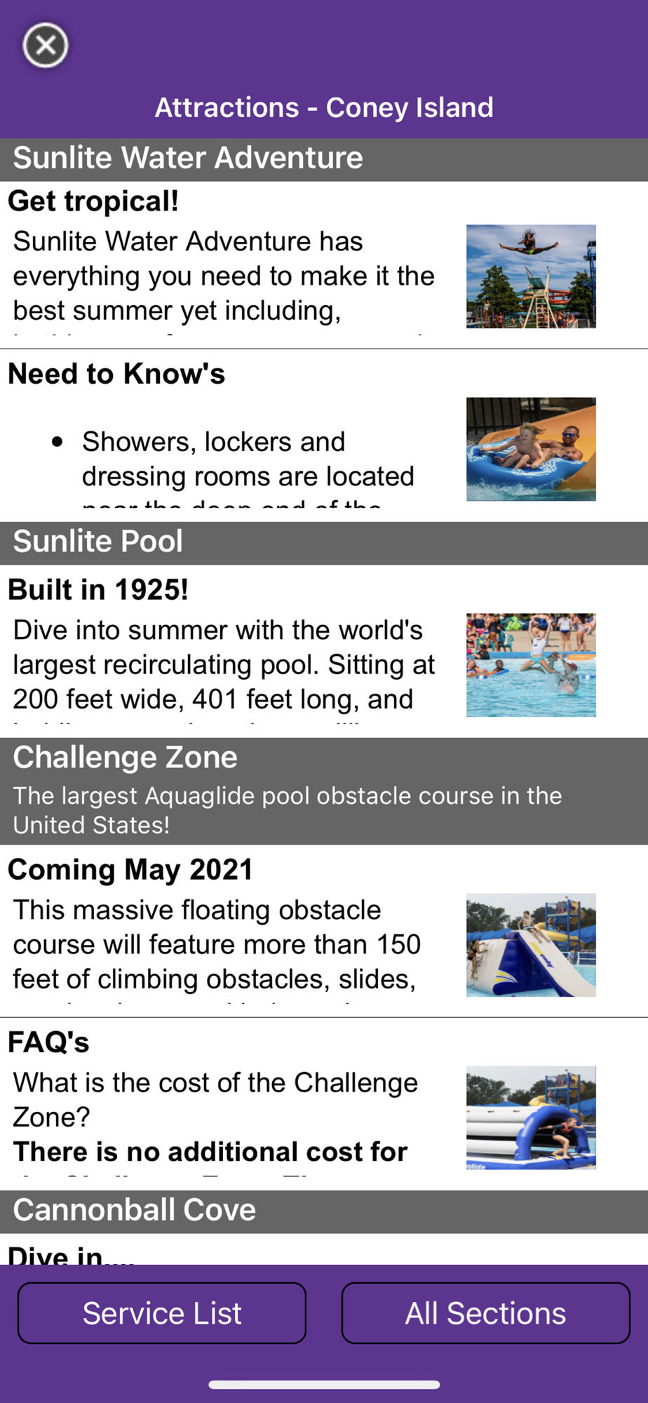Download the App for savings, information, specials and updates to discover how playtime is all the time at Coney Island Amusement Park in Cincinnati, Ohio. Scroll through for all the fun you can have – water adventures, rides, events, dancing, concerts, restaurants and the deal of the day – available right from your smart phone. 400 acres of fun, memories and now exclusive offers when you tap the App to: