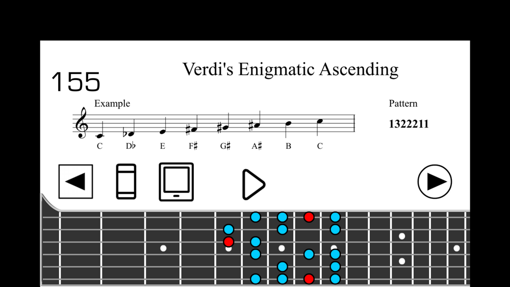- It shows the notes of each scale on a virtual Guitar so you can play it.
