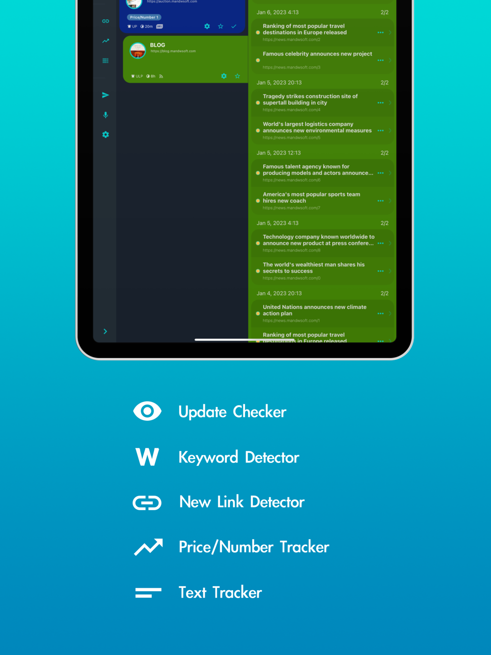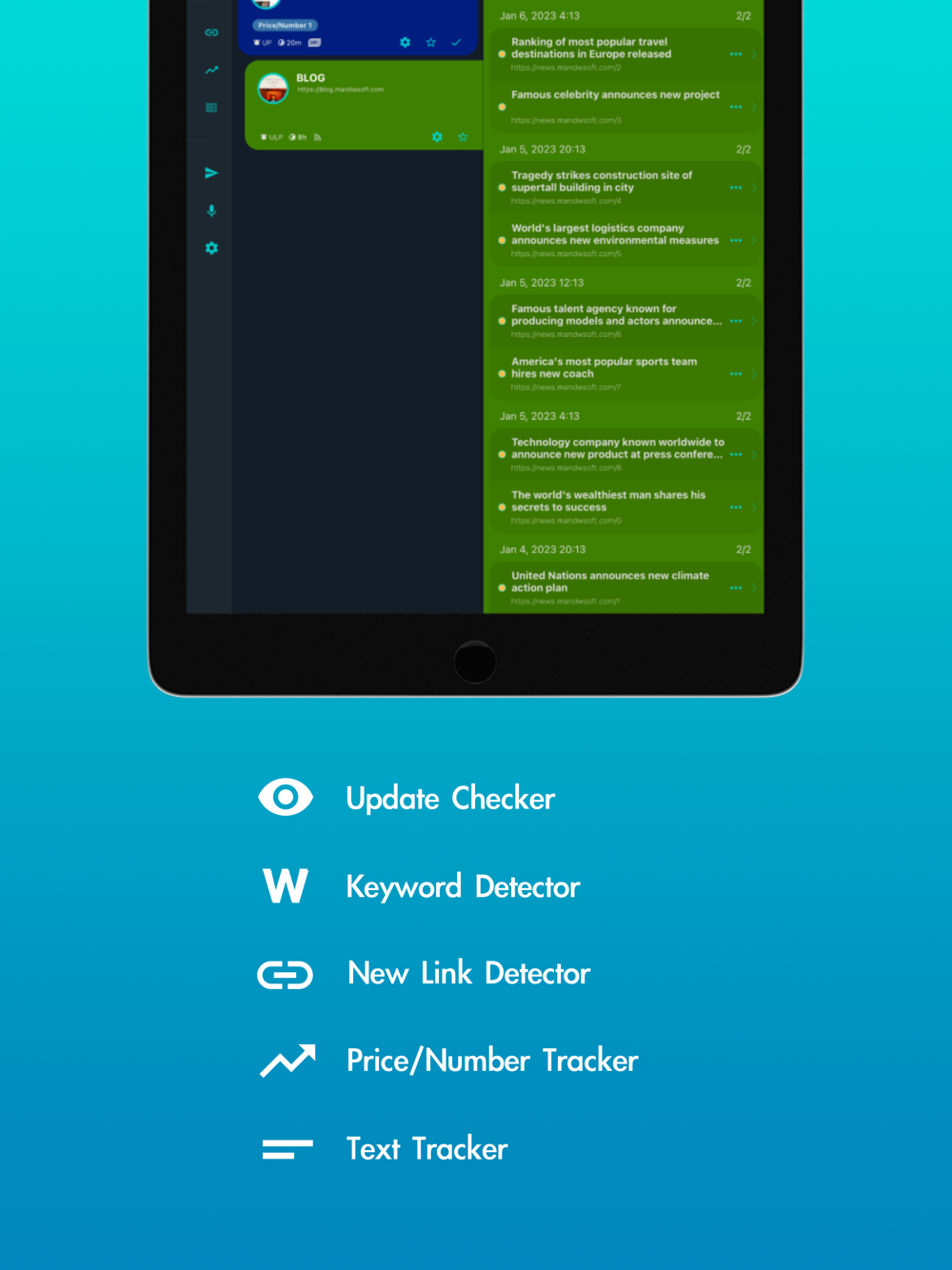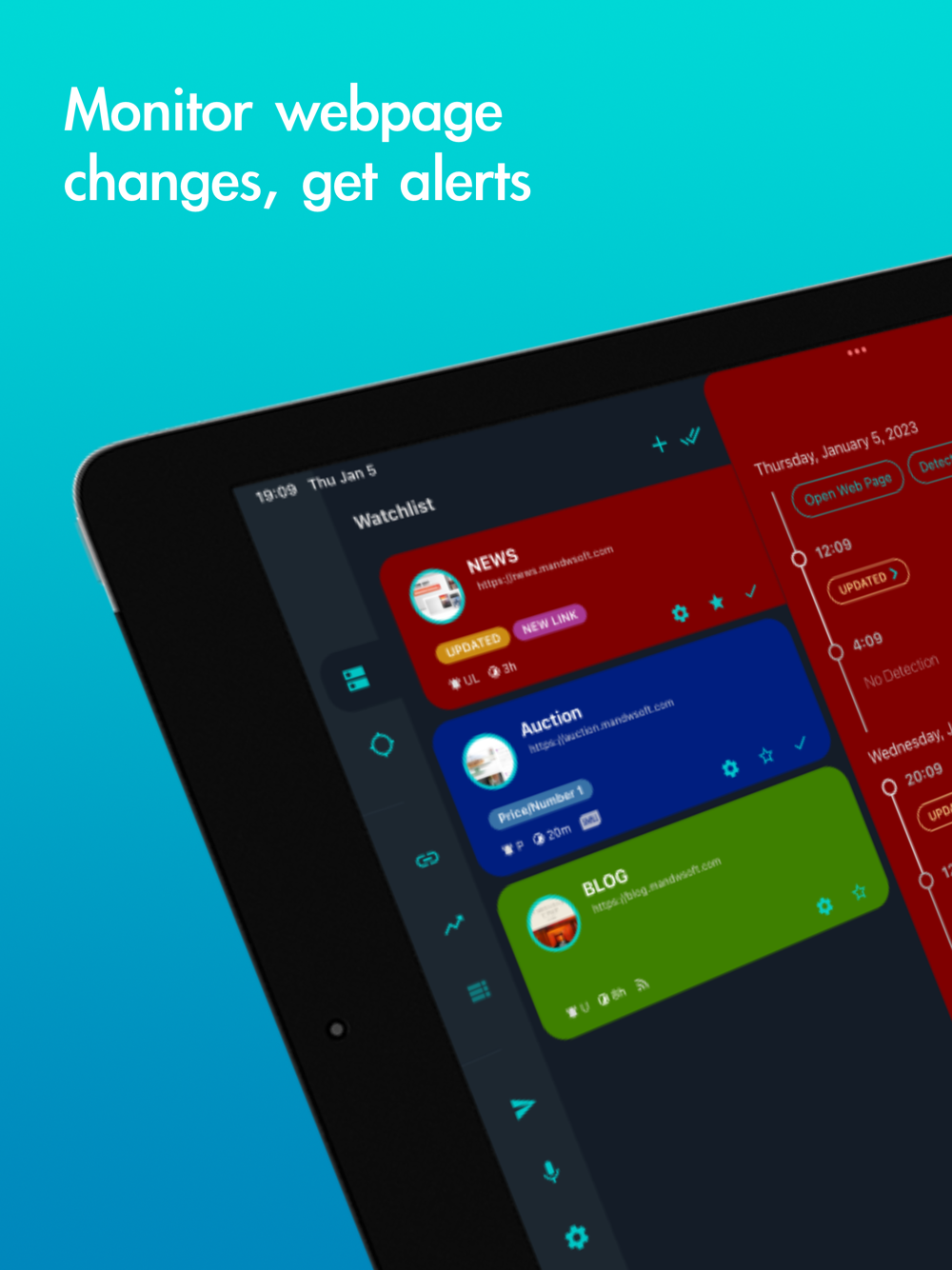 Just add web pages to your watchlist, and Miharu will check web pages even if you do not open the app or your phone is not connected to the net.