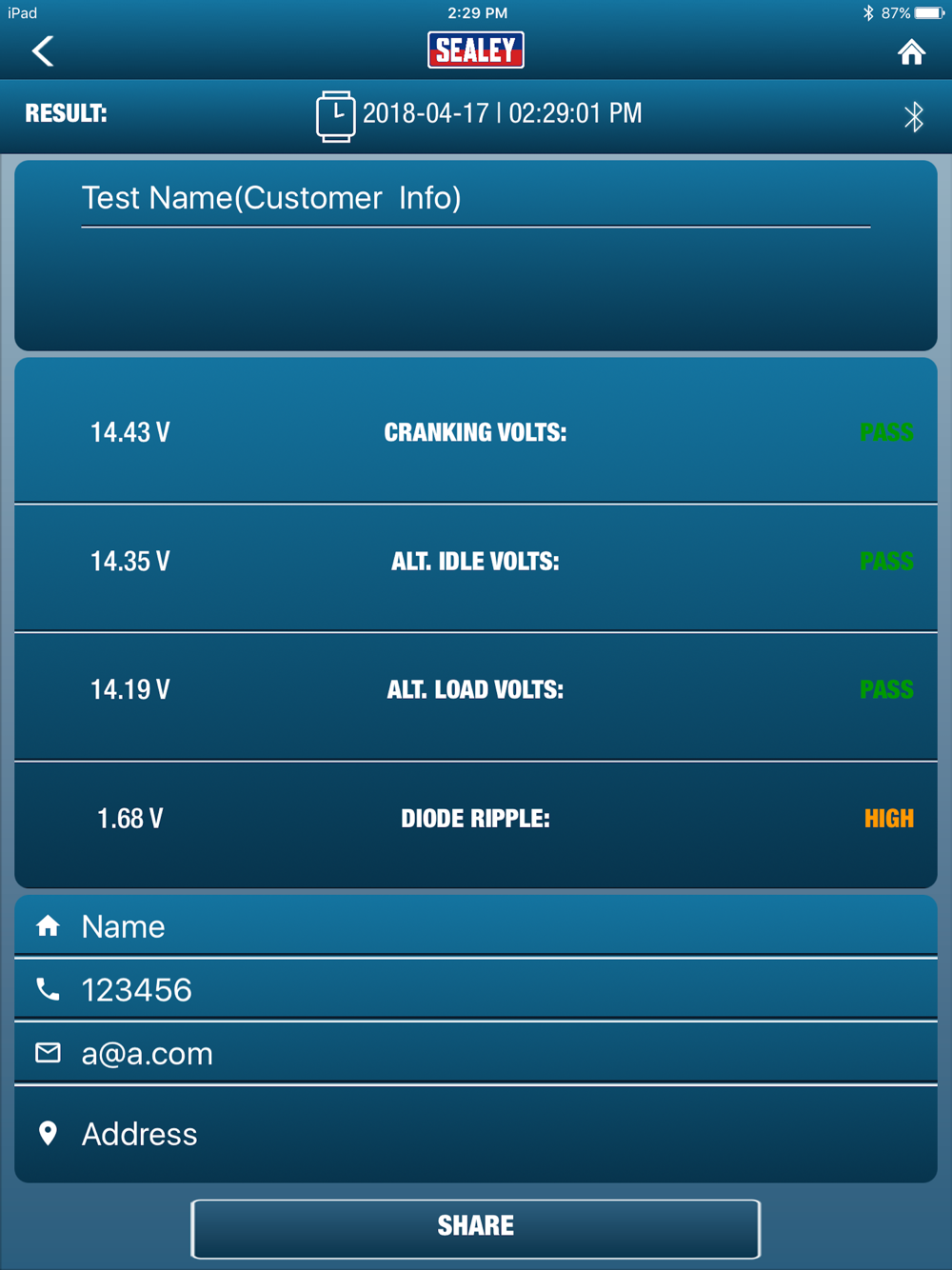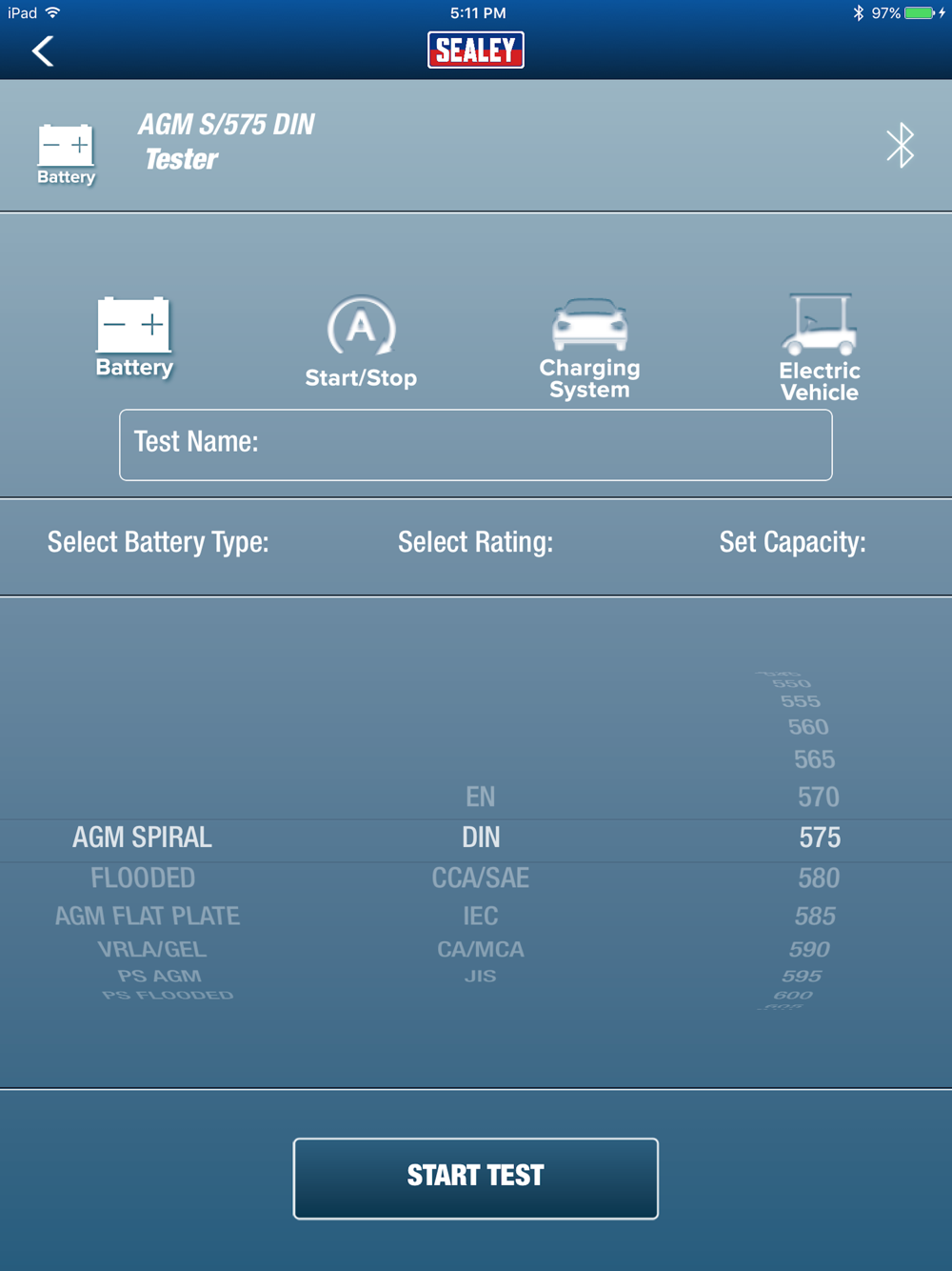 SEALEY innovative BT3000 App easily syncs your BT3000 Bluetooth Battery Tester to your smartphone or tablet. The wireless 6V/12V Battery Tester performs Battery Test, Start-Stop Battery Test, and EV Battery Test. It will also perform 12V/24V System Test. Simply download and install the SEALEY BT3000 App from Apple Store to your mobile devices and experience the most advanced testing technology.