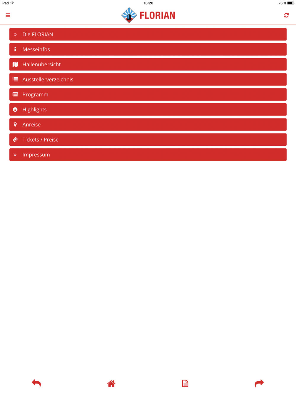 Mit der App zur FLORIAN haben Sie das volle Programm in der Tasche: alle Themen, alle Aussteller, alle Vorträge, alle Termine. Von der Anfahrtskizze bis zum Hallenplan haben Sie alle Infos dabei. Ihr Ticket können Sie online kaufen. So gehen Sie locker an der Kassenschlange vorbei...