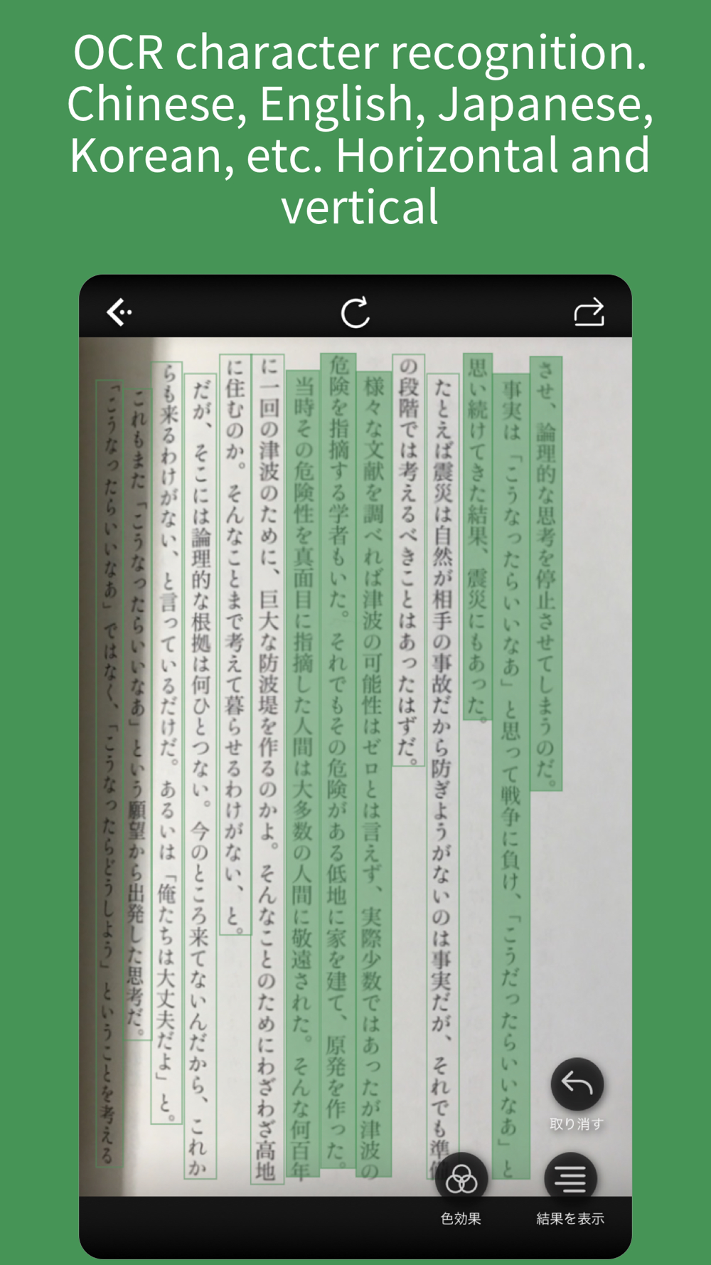- 360° text recognition in many languages , including Chinese, English, Russian, German, Spanish, Greek, Turkish, Korean and so on.