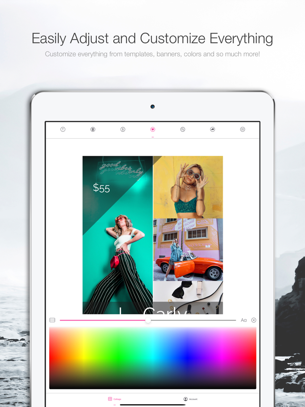 JUST ADDED! Now you can easily edit the Brightness, Saturation and Contrast of your images. If that’s not enough, add a filter to one of your collages for the ultimate look!