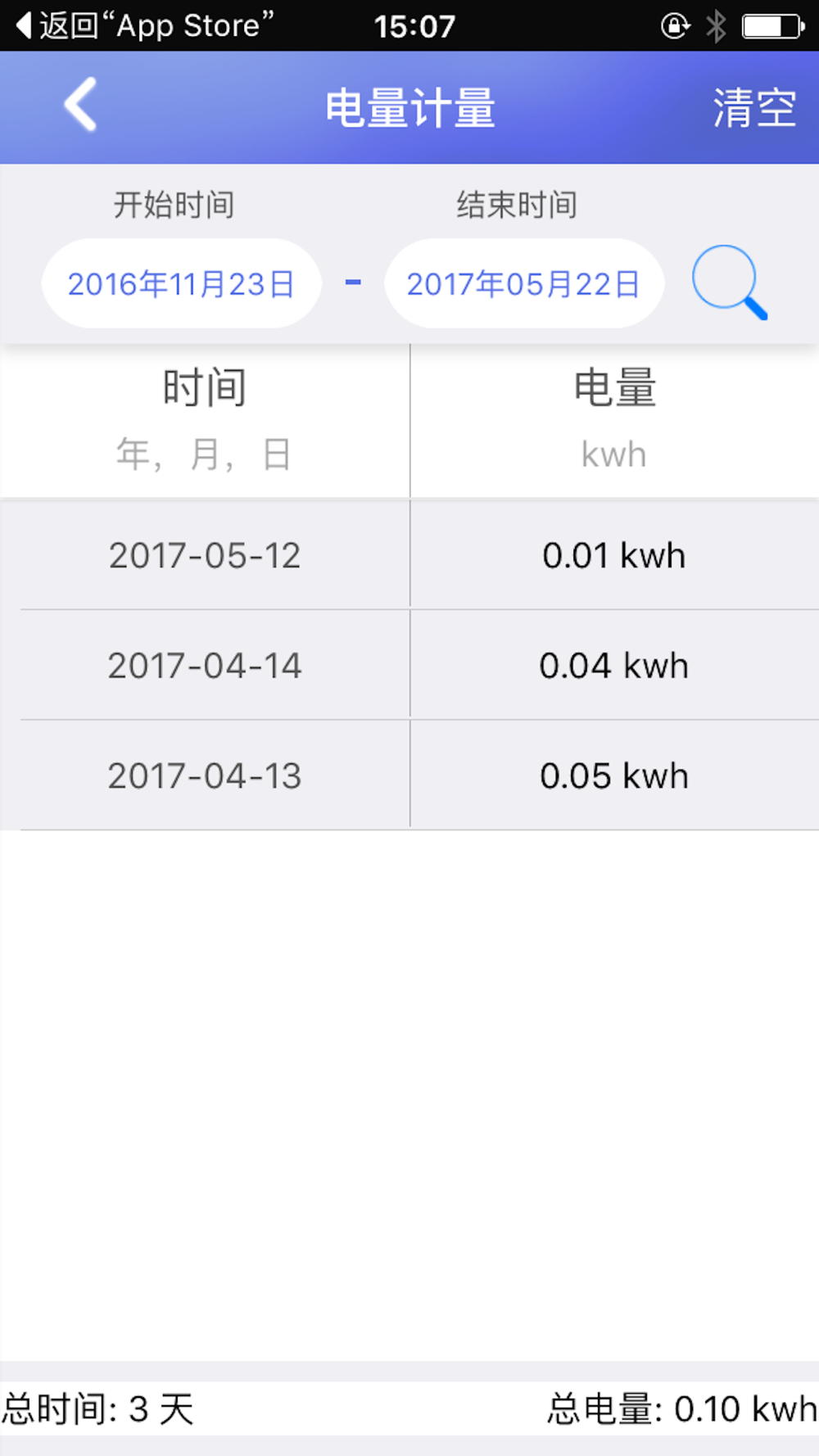 3、计量功能,可显示实时设备功耗,自动统计当面电量,可进行历史记录查询