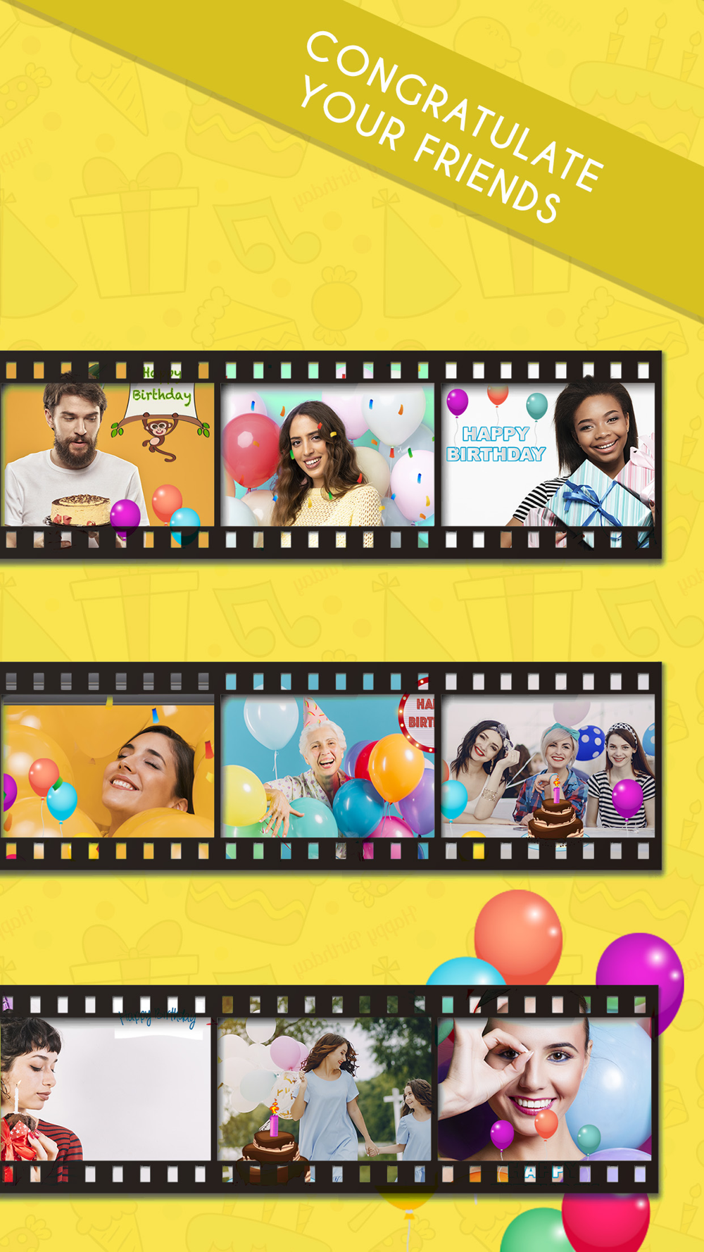 Download now and start to use our amazing birthday filters for your videos and gifs. You can create your personalized birthday videos or you can wish happy birthday to your loved ones. Use it for your birthday wishes. Record a video or create a gif and add 3d animations, sound effects and songs in real time.