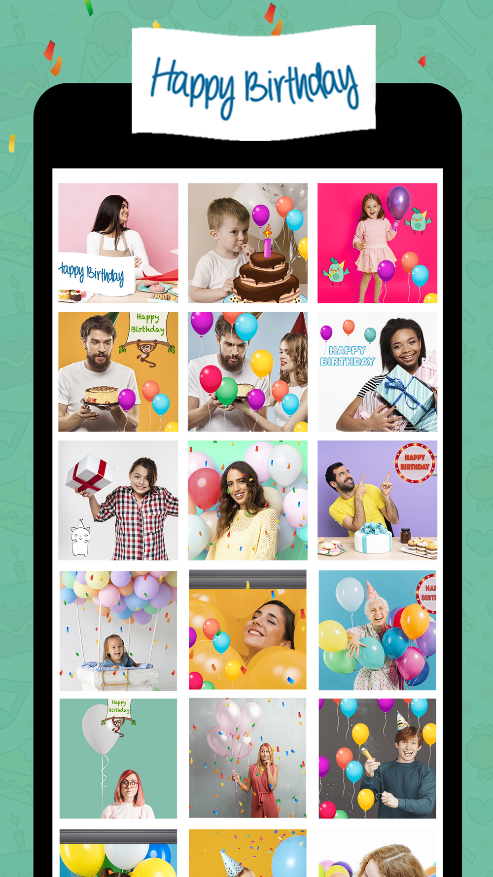 • Choose among filters with balloons, birthday cake, teddy bear or confetti