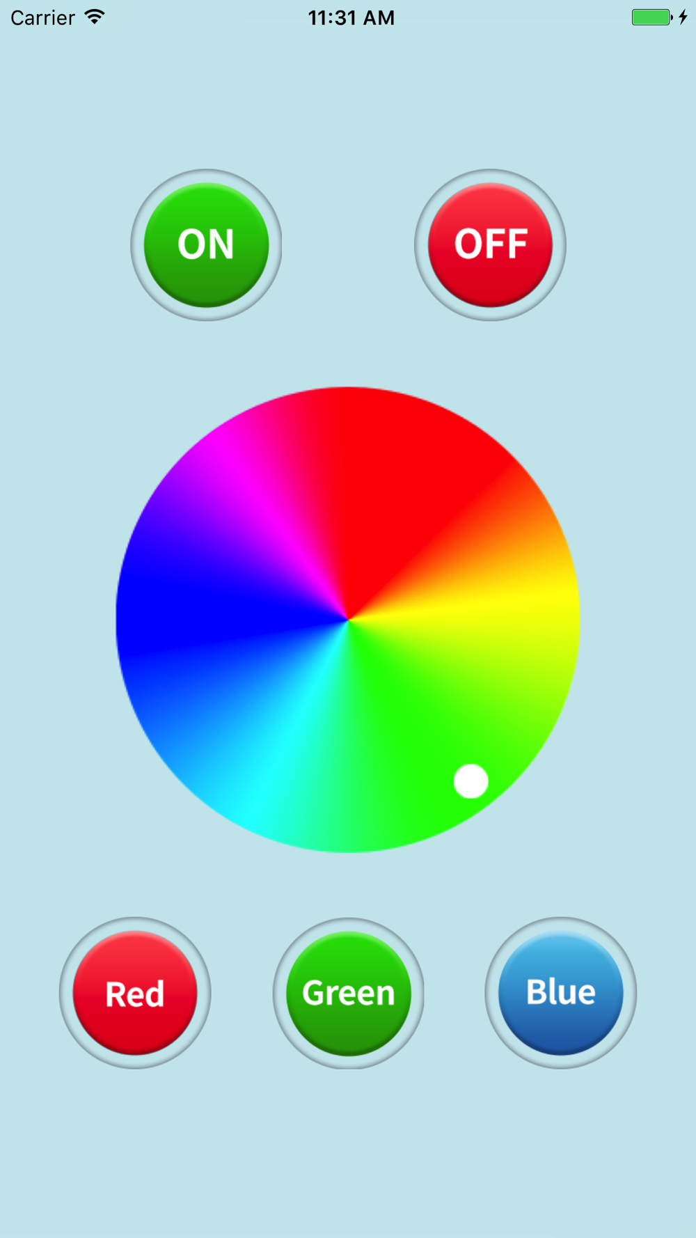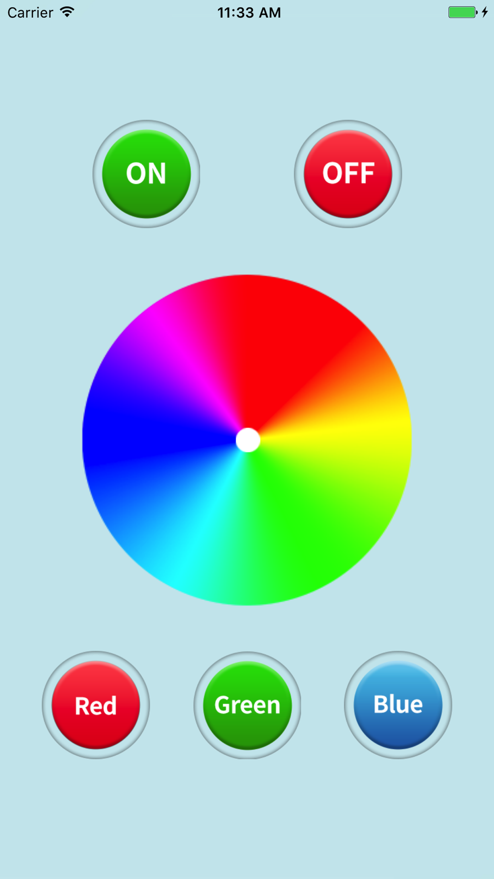 APP通过蓝牙发送RGB组合值控制蜡烛灯显示不同颜色。功能有开灯,关灯,滑动或点击三个红绿蓝滑条组合控制灯显示不同颜色。