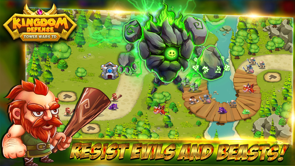 - In Kingdom Defense Tower Wars, the vast variety of daily tasks will bring to you a lot of gold and gems to upgrade the strength of your heroes and towers.