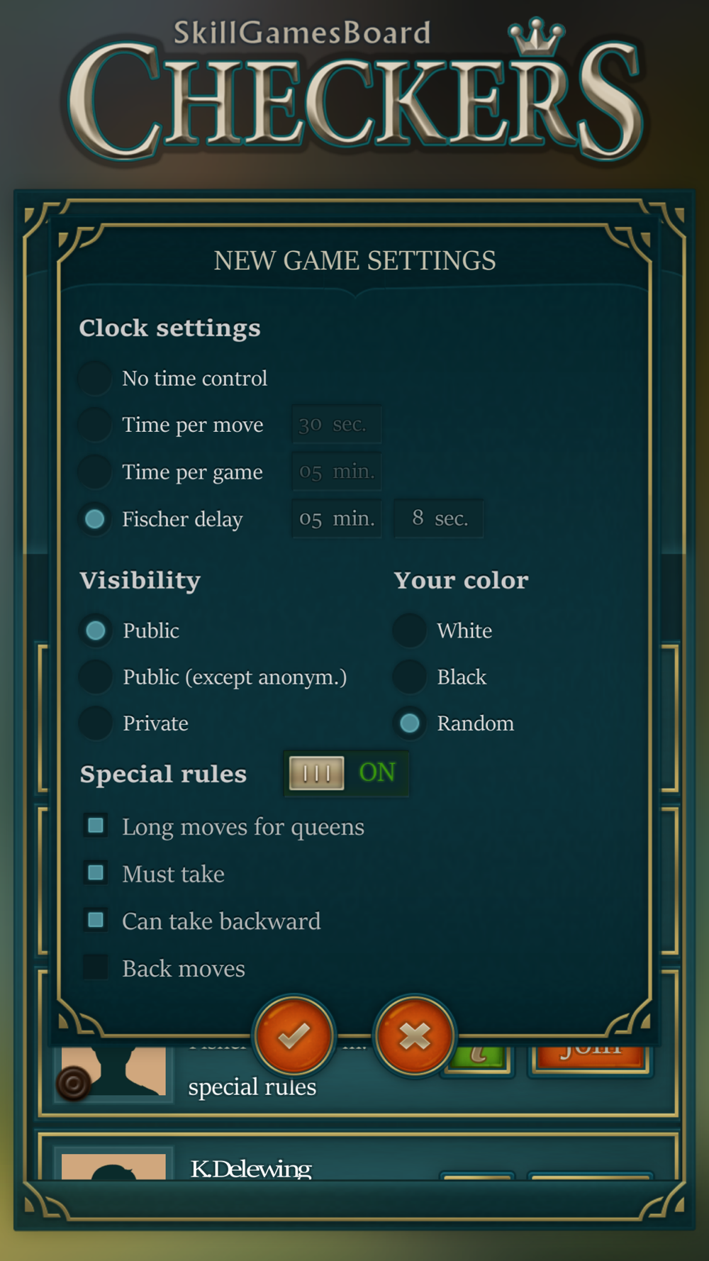 • 4 time control options: untimed, Fisher delay, and more;