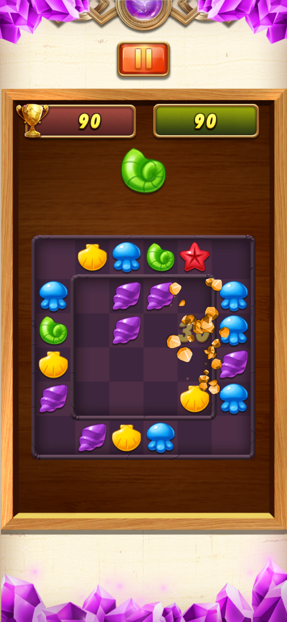 The goal is to push jewels from the edge of the 4x4 board, and match 3 or more same color jewels in vertically or horizontally to erase.