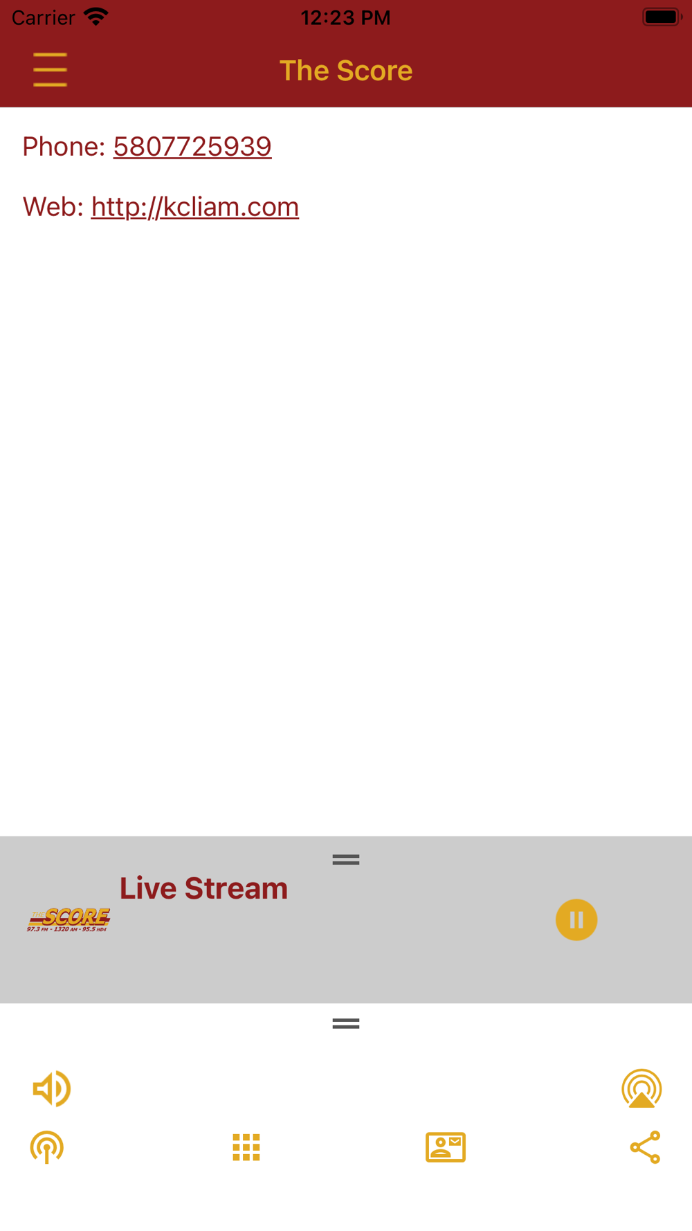 Listen to KCLIAM The Score live and to our special recorded audio events with this great app! Keep up with National, State and Local Sports and other local events. When you're not able to receive the signal from 1320AM, 97.3FM or 95.5FMHD4 you can keep up with your friends on The Score here!