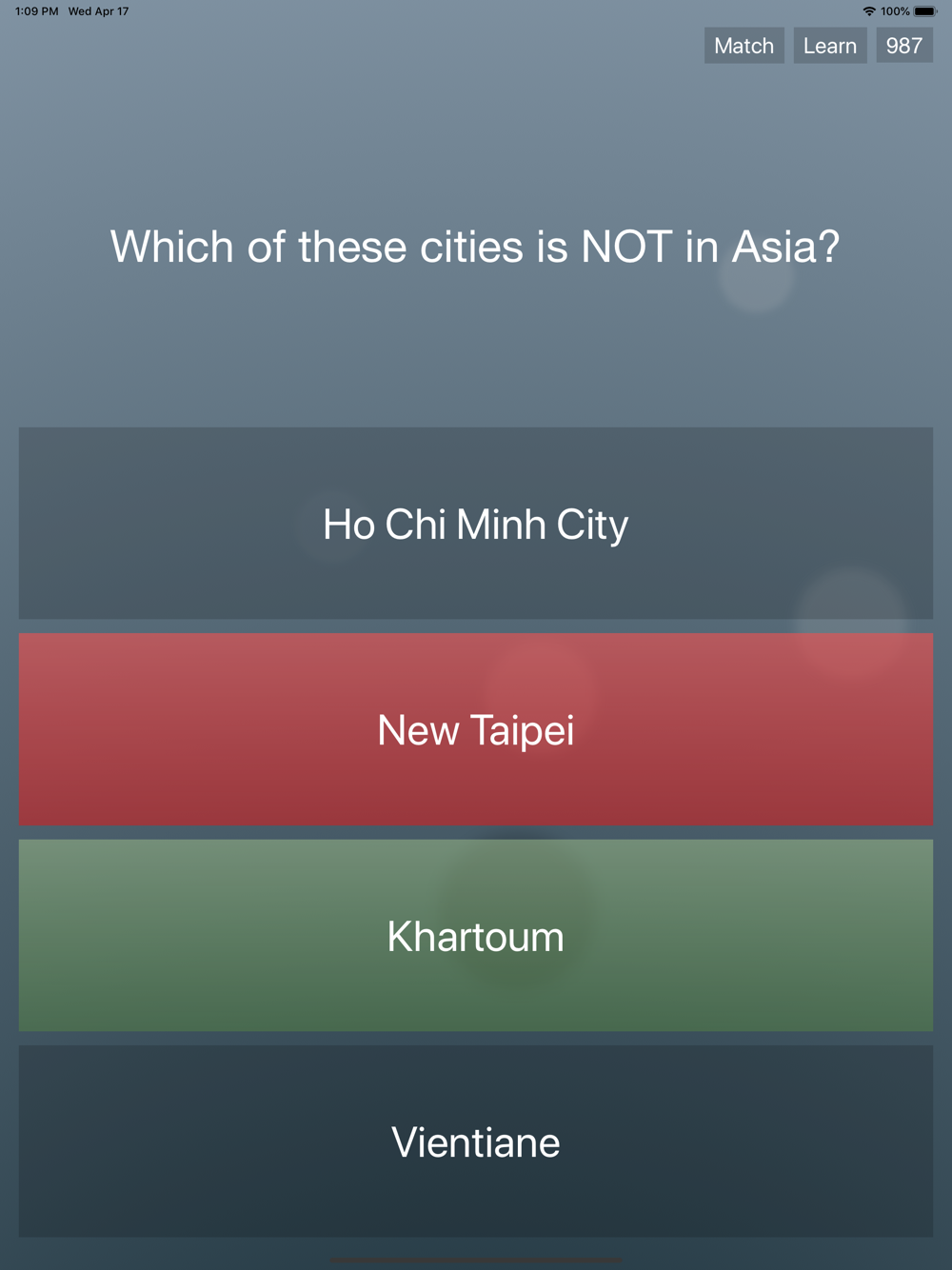 This quiz provides an endless stream of general knowledge questions. The questions are are designed to test a wide range of your general knowledge. All questions are linked to Wikipedia articles so that you can learn new things after answering.