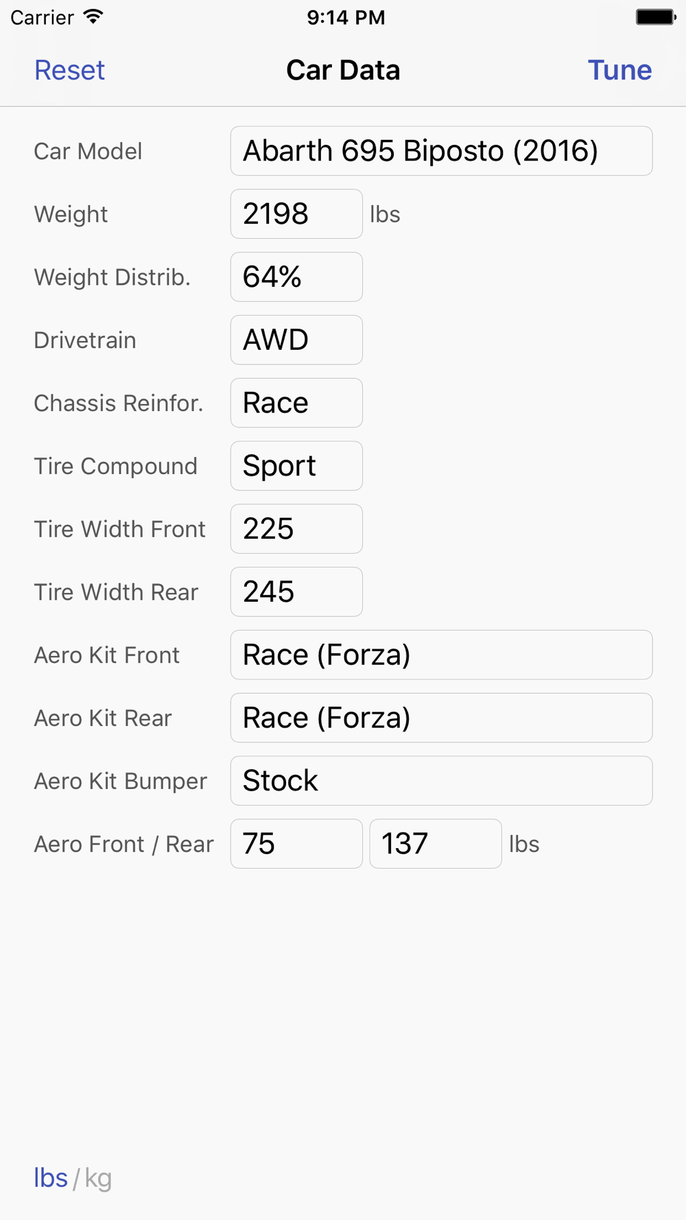 Based on the provided data a tune is calculated for that specific car. ARBs and spring rates are provided with 3 fraction digit precision, set the in-game values to nearest value.