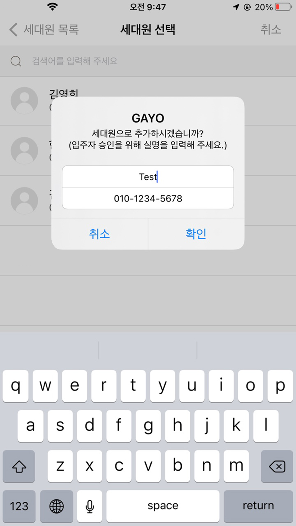 이후 출입증을 보내어 같은 앱을 설치한 사용자에게도 기간별 아파트 출입을 허락 할 수 있습니다.