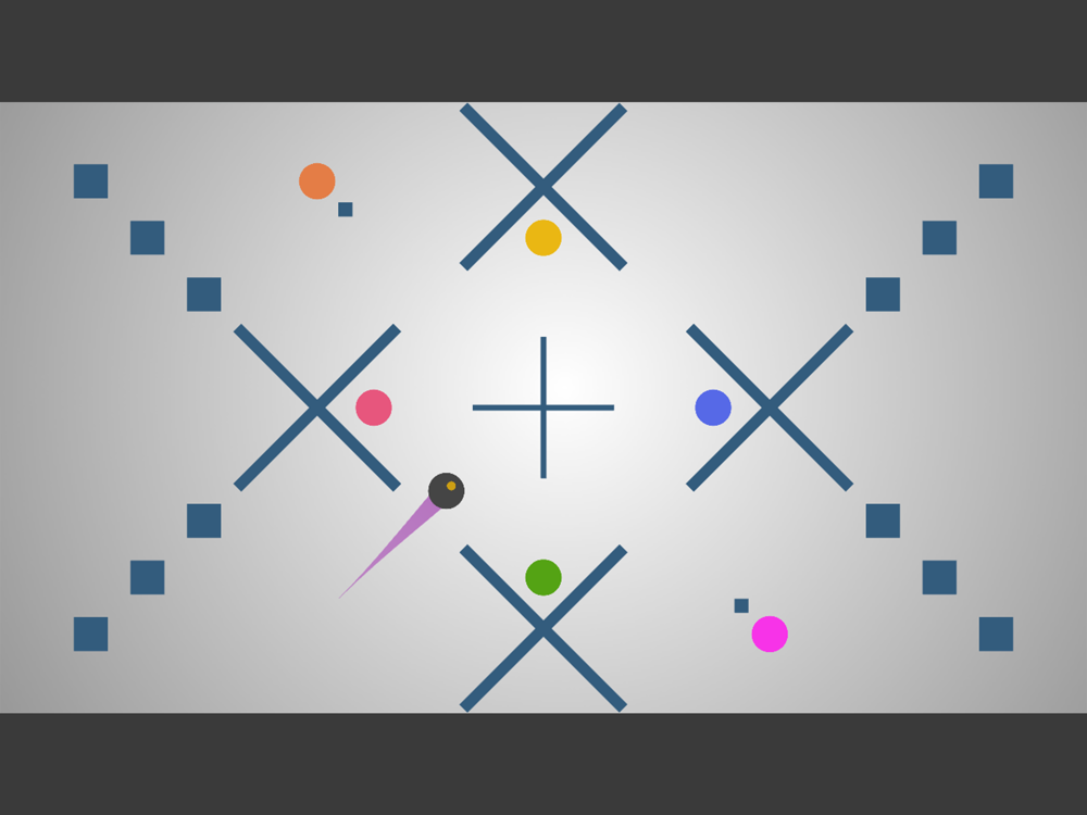 Your goal is to collect different color dots with smoothly moving black dot with a purple tail.