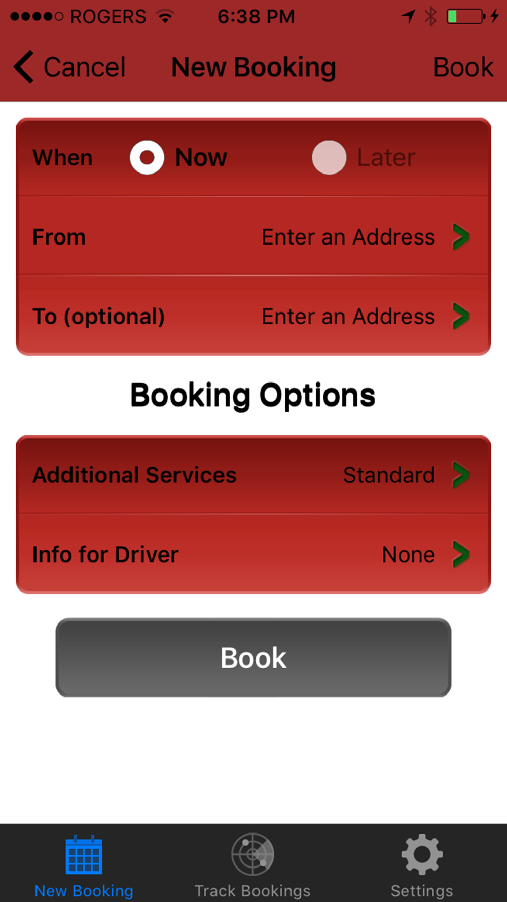 • Request a taxi cab right now, or select a future date and time for pick-up.