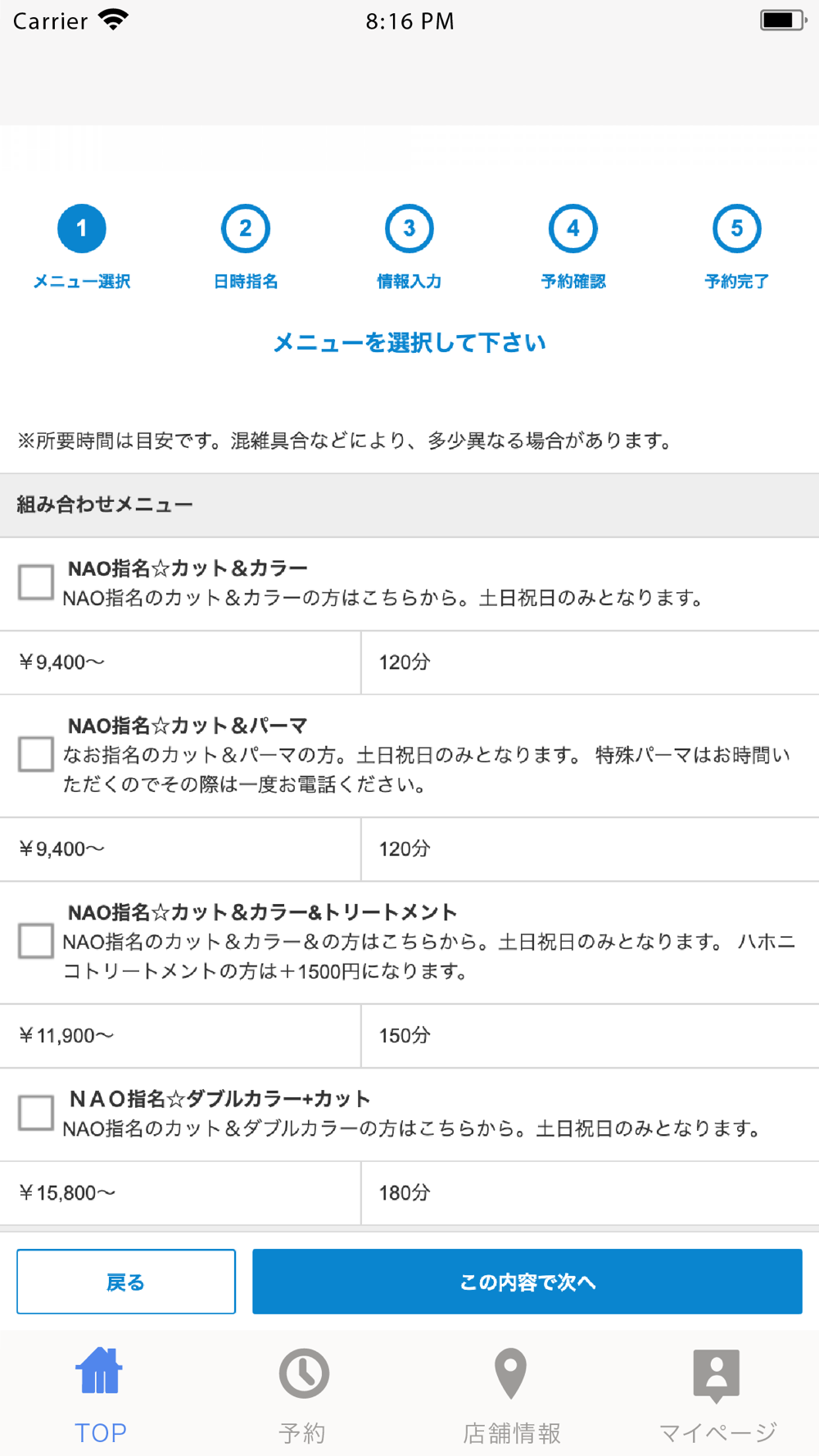 指名予約にも対応しているので担当スタッフのスケジュールを確認してからの予約が可能です。