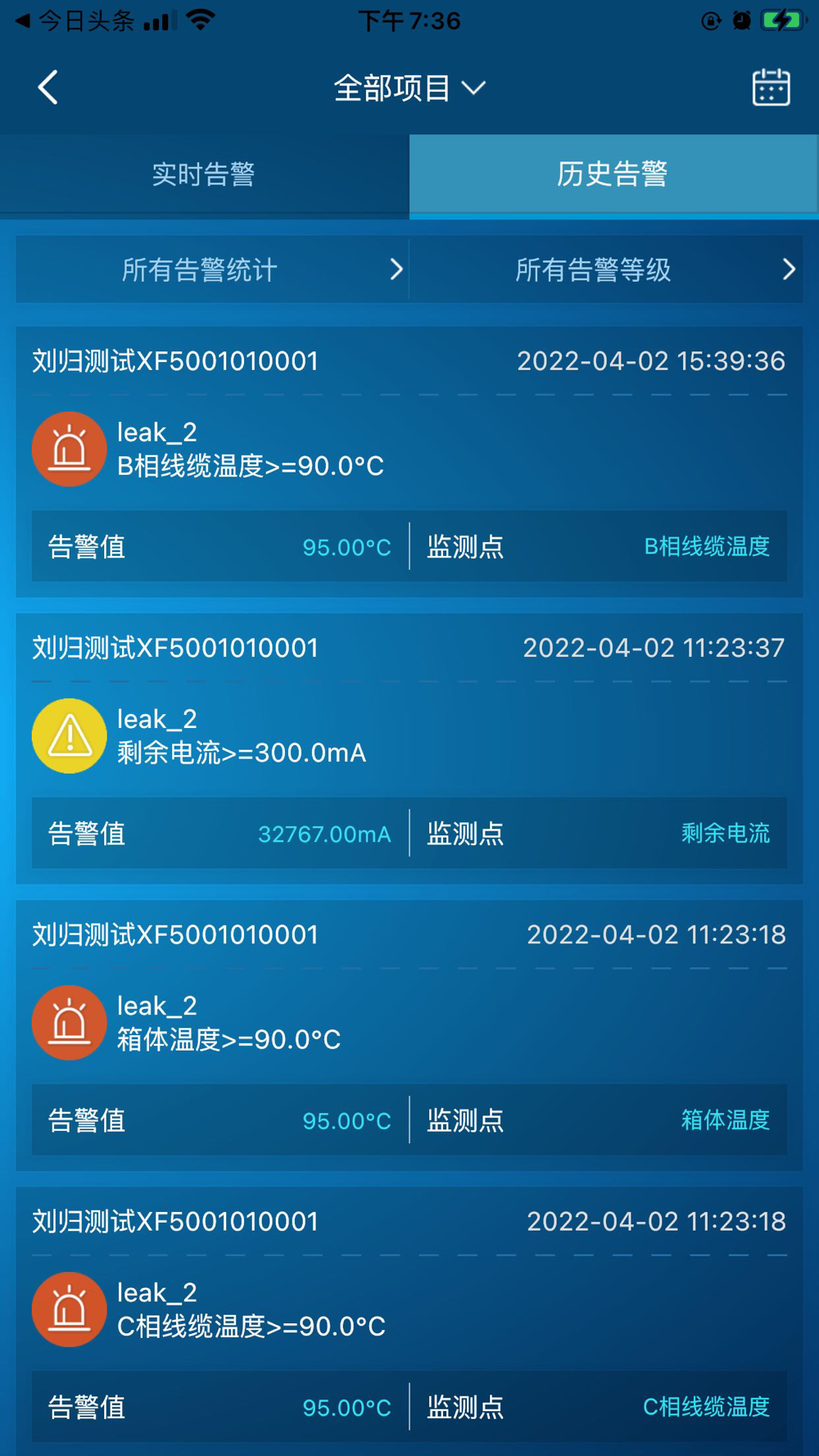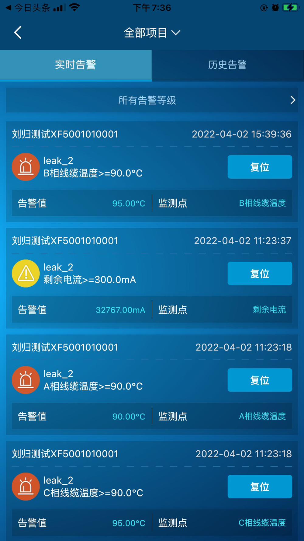 电祥云是一款针对漏电设备的进行实时监控的应用。可以在线查看设备的运行状态,包括漏电电流,温度,电压等实时数据曲线,可以接受告警,查看告警信息。