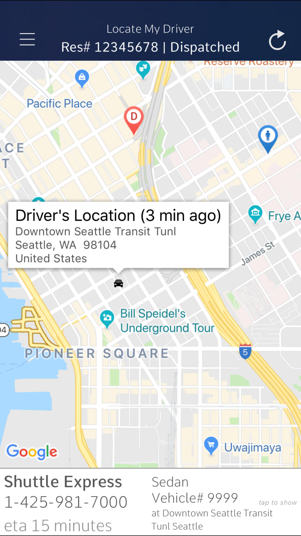 Book private sedan, SUV, and van rides on the app – book shared shuttle service at shuttleexpress.com, and book coach and luxury service by phone at 425-981-7000.