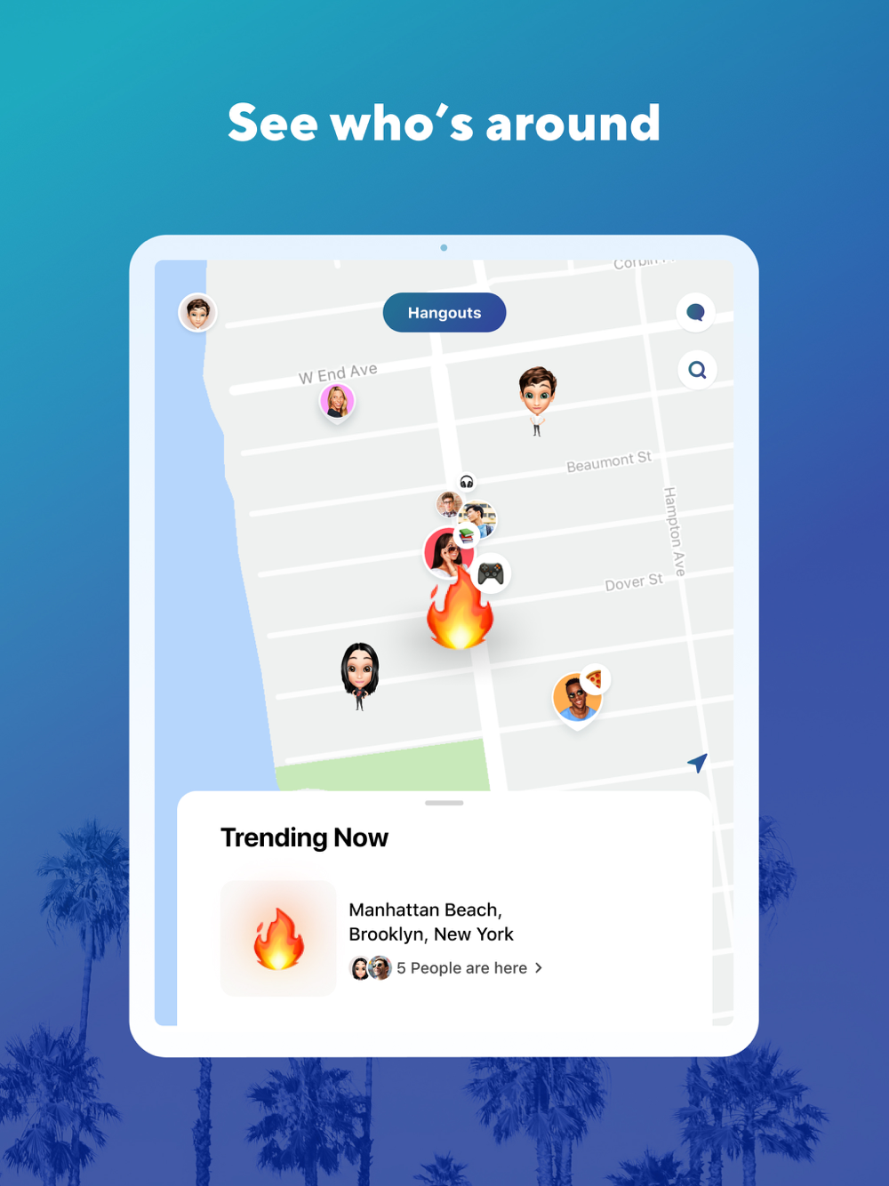 - See when your friends are bored, want to chill, grab food, etc. and message them to meet up.