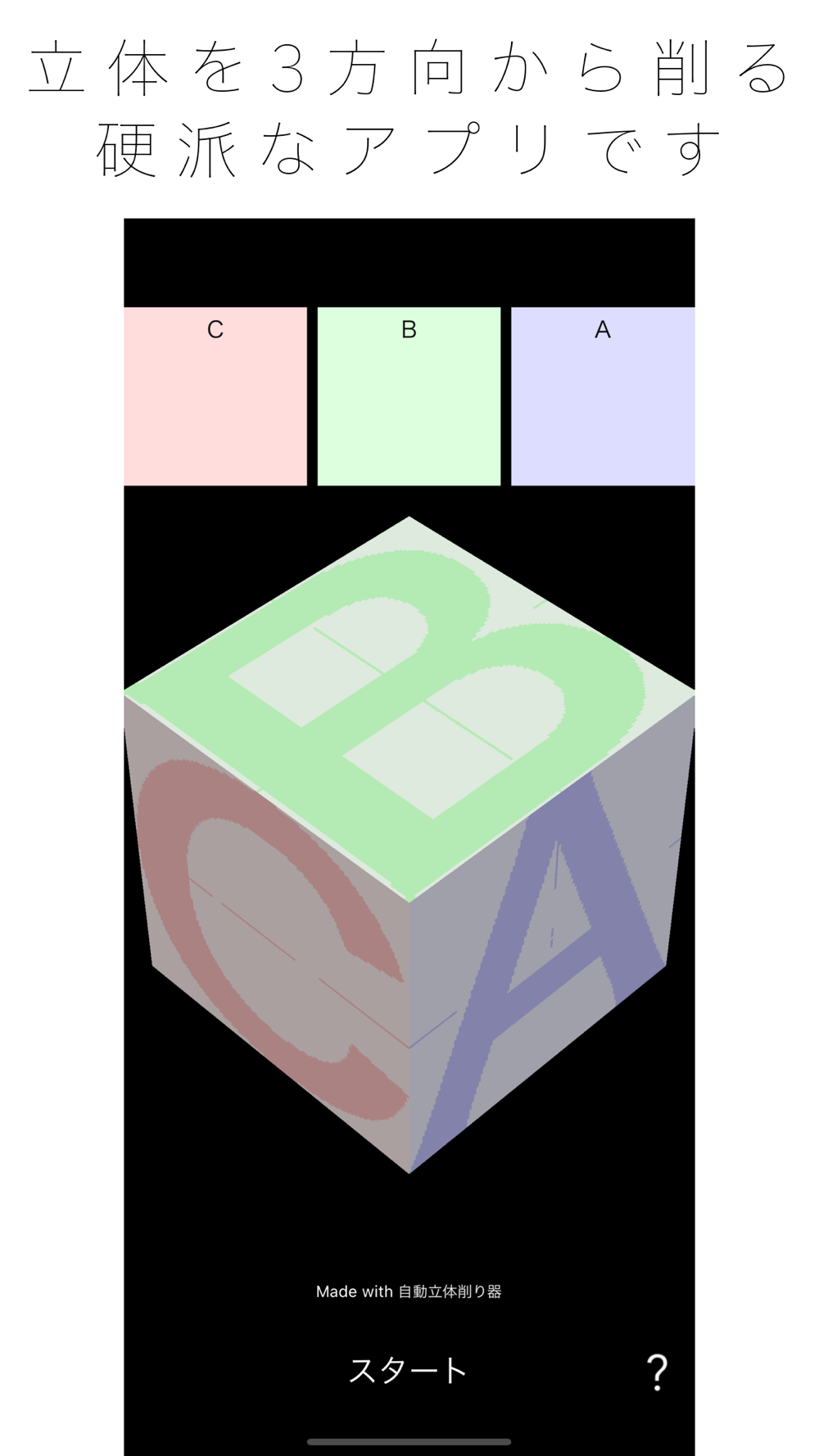 You can make a mysterious solid which seems to be 'A' or 'B' or 'C' depending to the point of view.