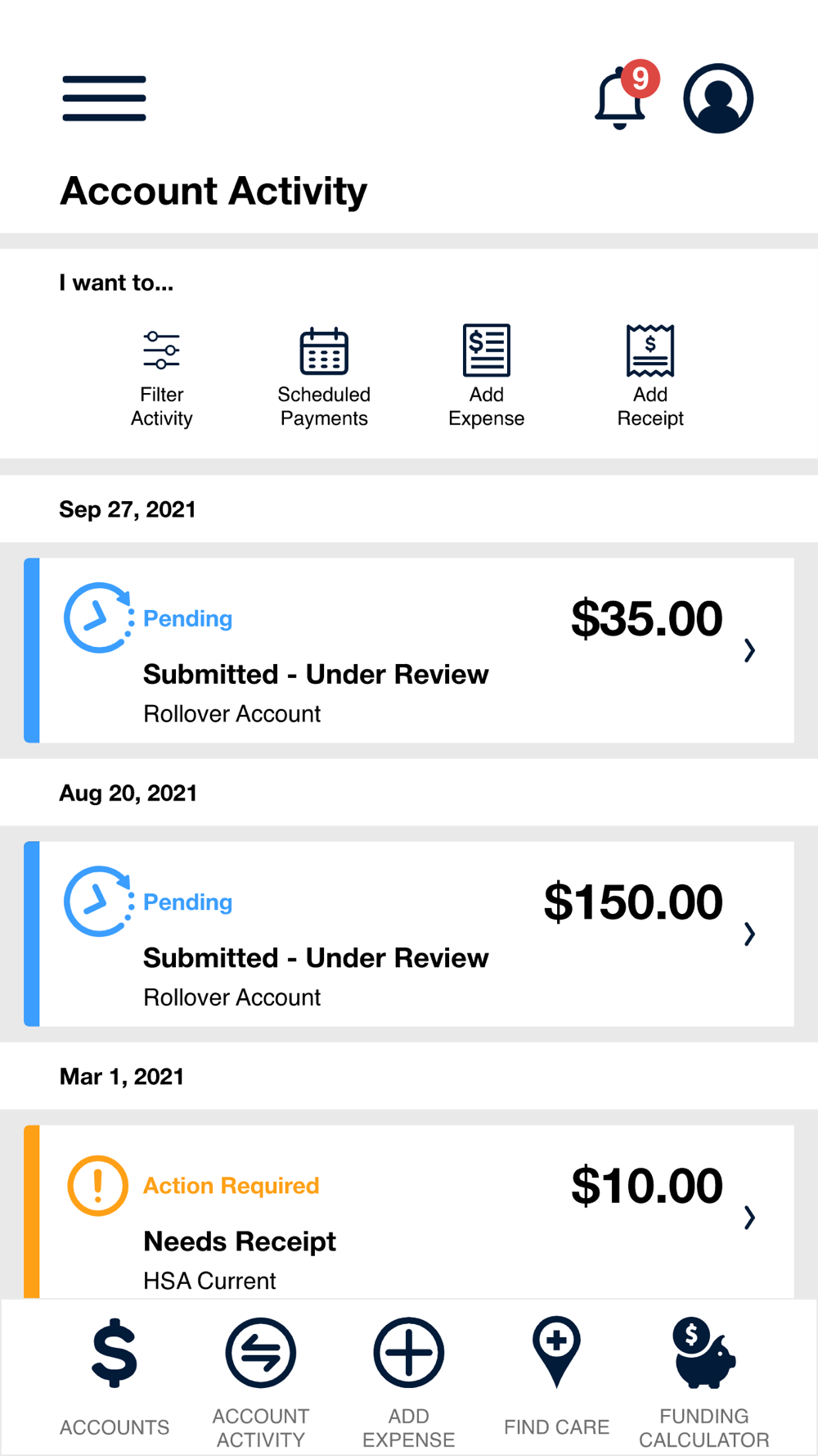 • Ability to fund HSA account from checking/savings account (if applicable)