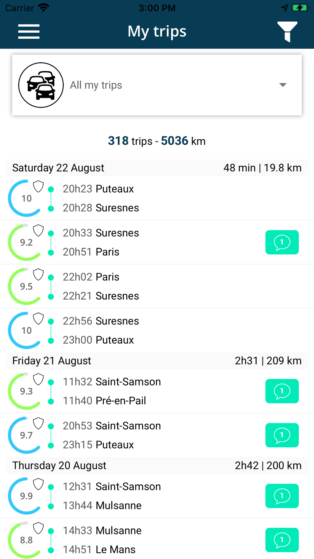 The application runs in the background and automatically detects the beginning and end of your trips. With this feature, you don't need to handle your smartphone while driving and the impact on the battery is minimal.