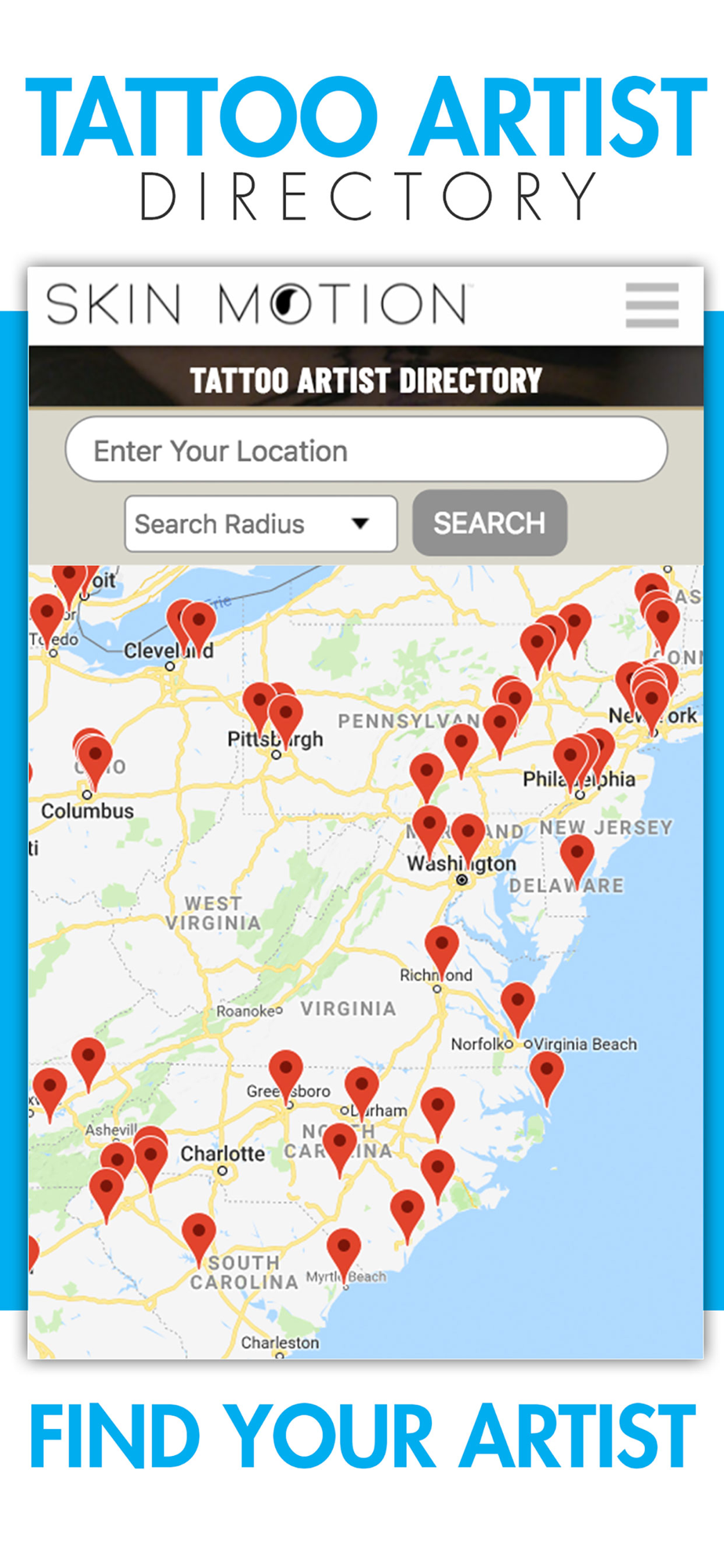Find a Skin Motion licensed tattoo artist who is trained to make Soundwave Tattoos in the Skin Motion app. Artists can apply to join the Skin Motion Tattoo Artist Directory for free at SkinMotion.com/apply