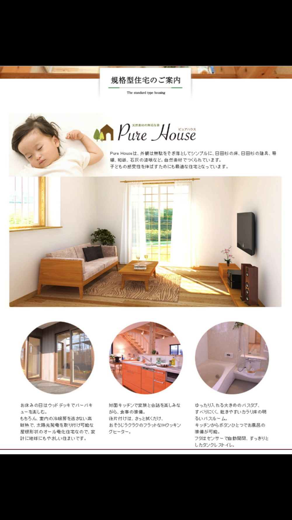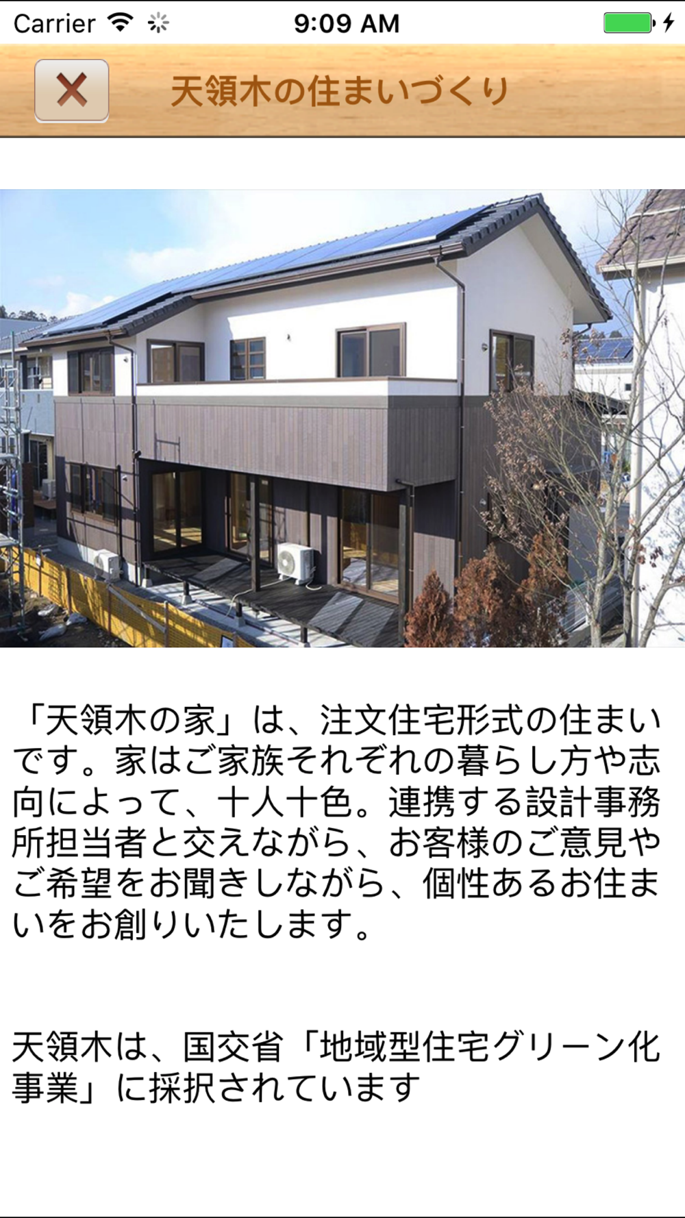 このアプリは、そんな私たち「天領木の」家づくりを、これから家づくりを始めるお客様によりわかりやすく伝えることができるようにと開発しました。住宅ラインナップの紹介や、施工写真などが閲覧頂けます。