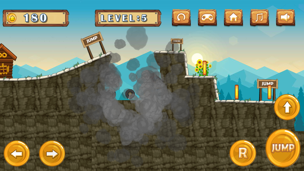 Jump on your motorcycle as you attempt to safely race up and down the hills, jump through gaps and avoid any deadly obstacles. Safely get to the checkered flag as quickly as possible to pass each level. There are 45 different levels for you to master as you try to complete your racing trials.